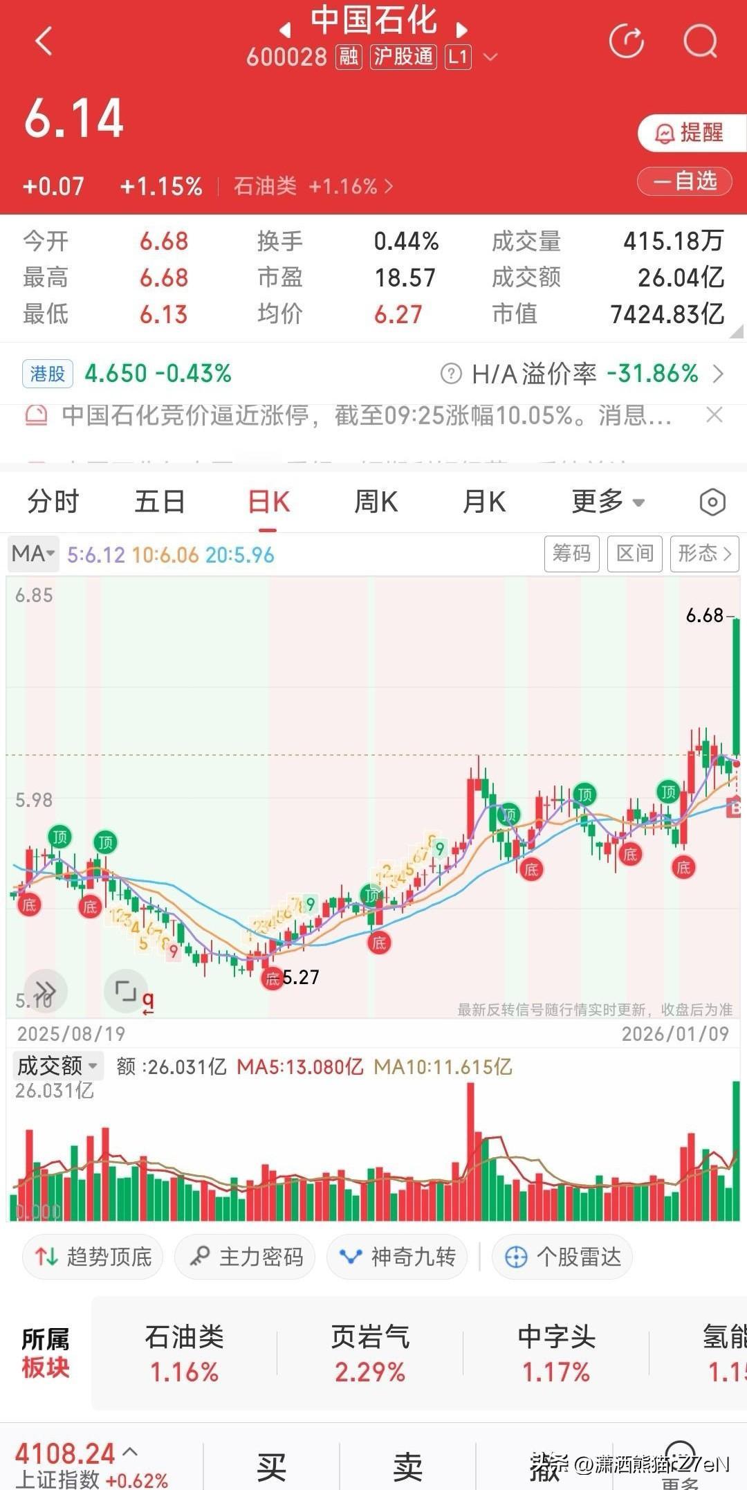 中国石化这个玩得太厉害了吧,早盘逼近涨停,然后一路下跌,一根巨大的阴棒,给早盘冲进去赌连续涨停的韭菜当头棒喝,你想进去吃肉,结果没想到被割肉了,太惨了。这个主力真的太狠了,杀人都不用刀啊!真是股市如战场,处处是地雷 这波操作的源头,得从1月8号晚上那则央企重组消息说起。国务院国资委官宣中国石化要和中航油战略重组,一个是炼厂巨头,一个是航油销售霸主,上下游打通的故事让股民连夜沸腾,满脑子都是“巨无霸合体=连续涨停”的剧本。毕竟中国石化这种7400亿市值的航母,上一次涨停都不知道是多少年前的老黄历了,这种级别的利好,谁看了不心动? 1月9号一开盘,集合竞价阶段买盘就堆成了山,股价直接被钉死在6.68元的涨停价上。那些熬夜研究消息的散户,生怕错过翻倍机会,在涨停板上疯狂挂单,心里盘算着至少三个板的收益。可谁能想到,9点30分正式开盘后,剧情直接反转。涨停板上的封单没等来更多买盘,反而遭遇了排山倒海的抛售,股价像坐了垂直过山车,几分钟内就从涨停跌到只剩1%不到的涨幅,盘中最低时仅微涨0.46%。 盘后数据一出来,所有人都傻了眼:超大单资金净流出高达15.3亿元,换手率却只有区区0.67%。这意味着什么?就是机构和长线资金借着散户的狂热,在涨停板上疯狂出货,而接盘的散户根本没多少人愿意在下跌后补仓,硬生生把自己套在了山顶。股吧里一片哀嚎,有人晒出涨停价买入的交割单,一天浮亏接近十个点,直言“开盘即巅峰,收盘泪两行”。 其实这波收割早有预谋。中国石化的股东结构里,744家机构握着大量筹码,还有不少长线投资者靠分红持股。对他们来说,重组的长期价值不重要,重要的是这个利好能把股价顶到涨停,正好给了他们兑现浮盈的机会——毕竟一个涨停的收益,可能比持股两三年的分红还多。而散户看到的只有“央企重组”的噱头,却忘了这么大的盘子,拉升需要海量资金,一旦高位有人抛售,根本没人敢接盘。 更讽刺的是,这次重组本身确实是实打实的利好。两家公司联手后,年营收能突破3.35万亿元,还能打通航油产业链,对抗油价波动更有底气。但资本市场从来不等长期故事,散户追的是短期暴利,机构赚的是确定性差价,这就形成了鲜明的博弈:散户想着进去吃肉,机构想着借势割肉。那些早年高位套牢的散户,还盼着借重组解套甚至加仓,最后却成了机构出逃的接盘侠。 这事儿也给所有追消息的股民上了生动一课:股市里的利好从来不是给散户准备的盛宴,而是机构收割的信号枪。尤其是盘子大的权重股,涨停往往不是行情的开始,反而可能是阶段性的终点。你以为捡到了宝藏,其实踩中了机构早就埋好的地雷。 各位读者你们怎么看?欢迎在评论区讨论。