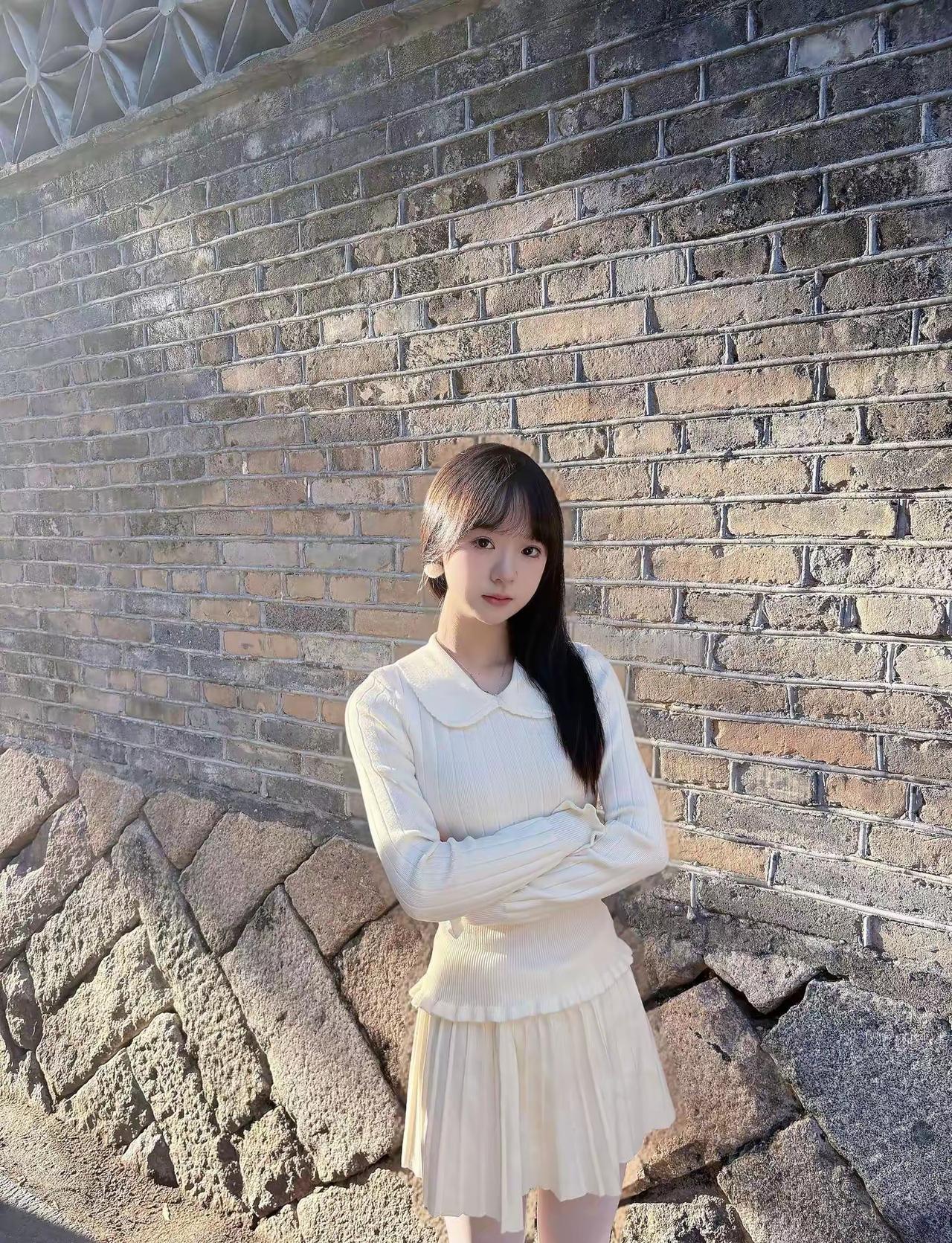 河畔少女,优雅白裙,城市天际线作背景,清新自然。