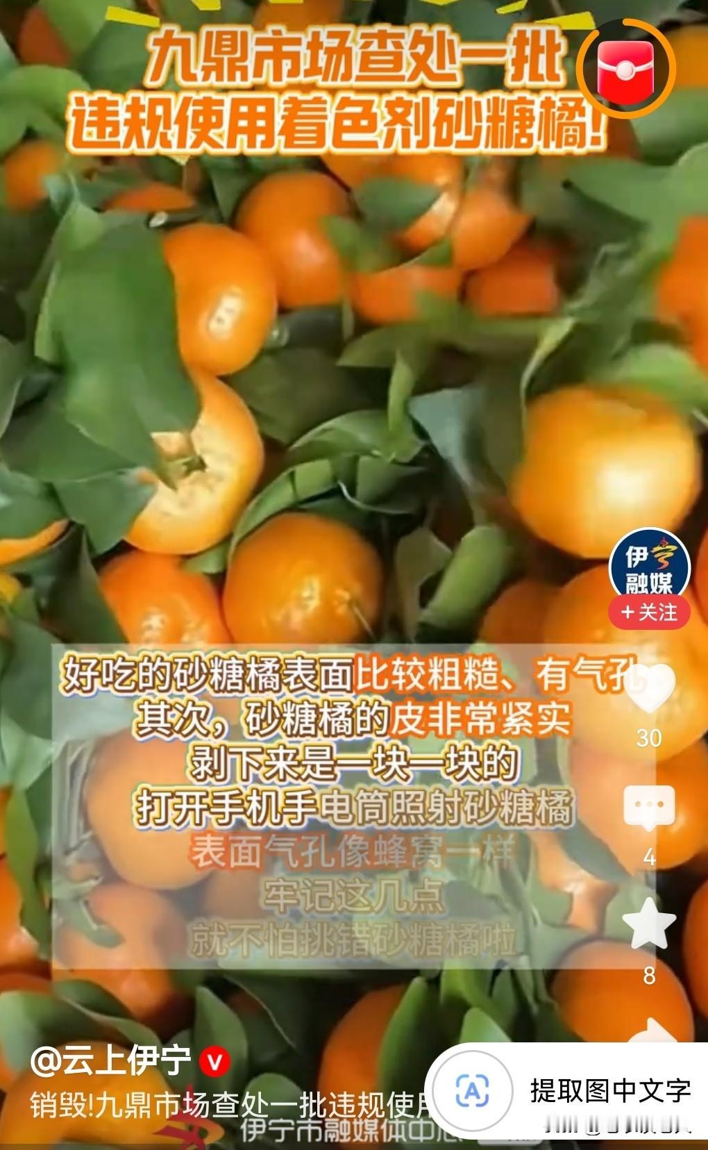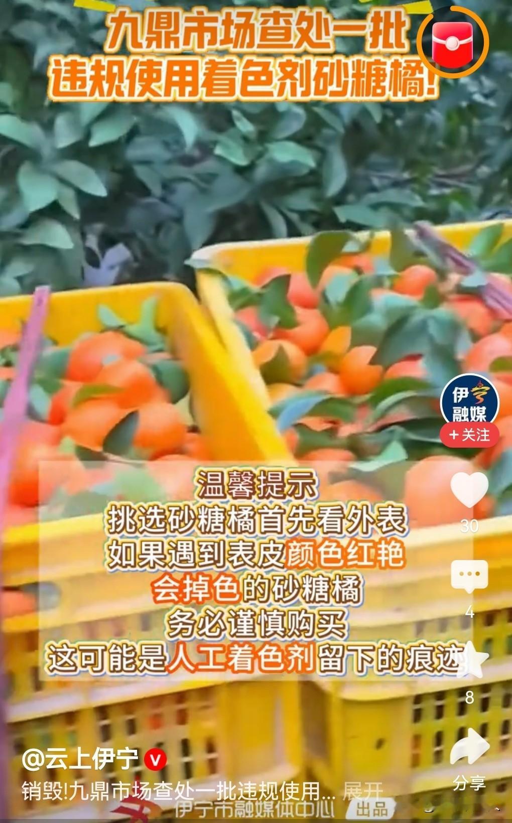 沙糖桔有猫腻:新疆一市场查处一批违规着色的砂糖橘 据媒体今天报道,1月6日,新疆
