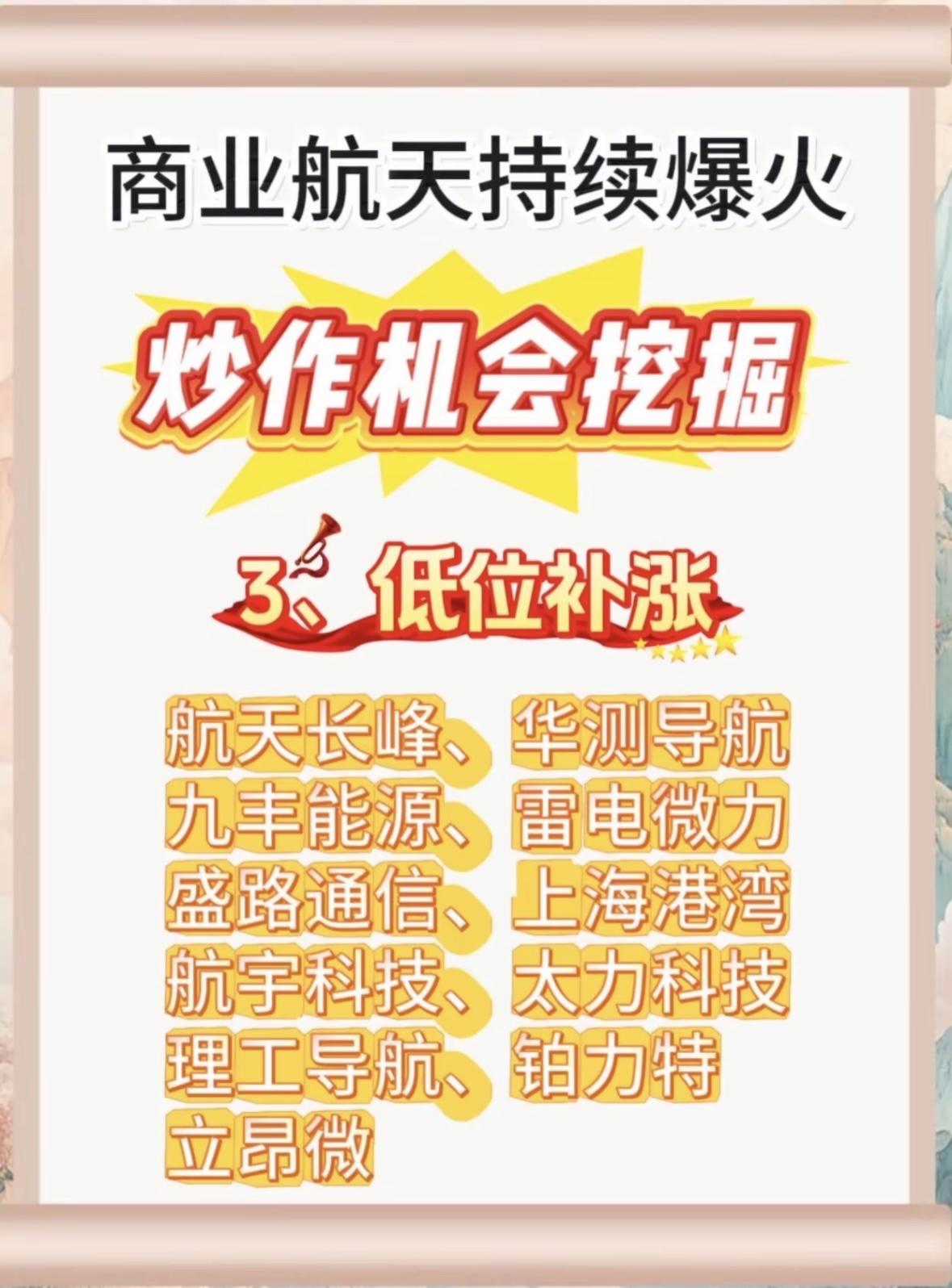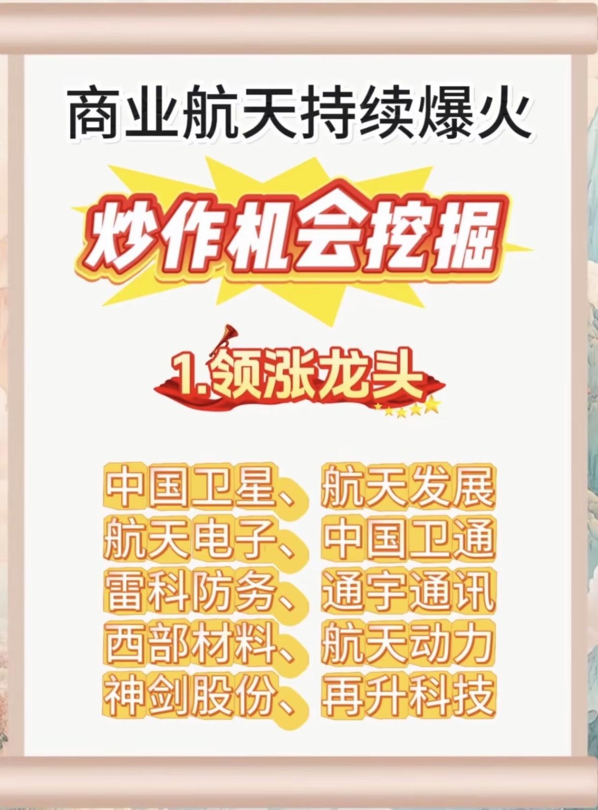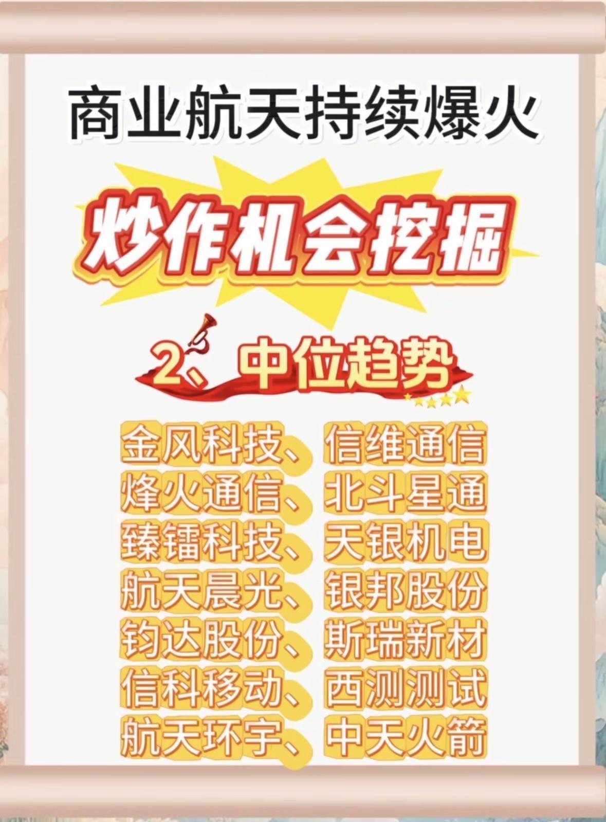 商业航天持续火爆,抓住机会低买高卖! 商业航天热度飙升,龙头股受捧,卫星、防务、材料等领域个股表现活跃,投资机会值得关注。