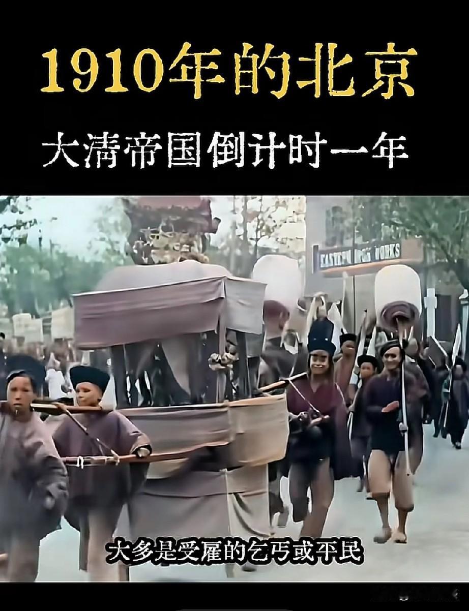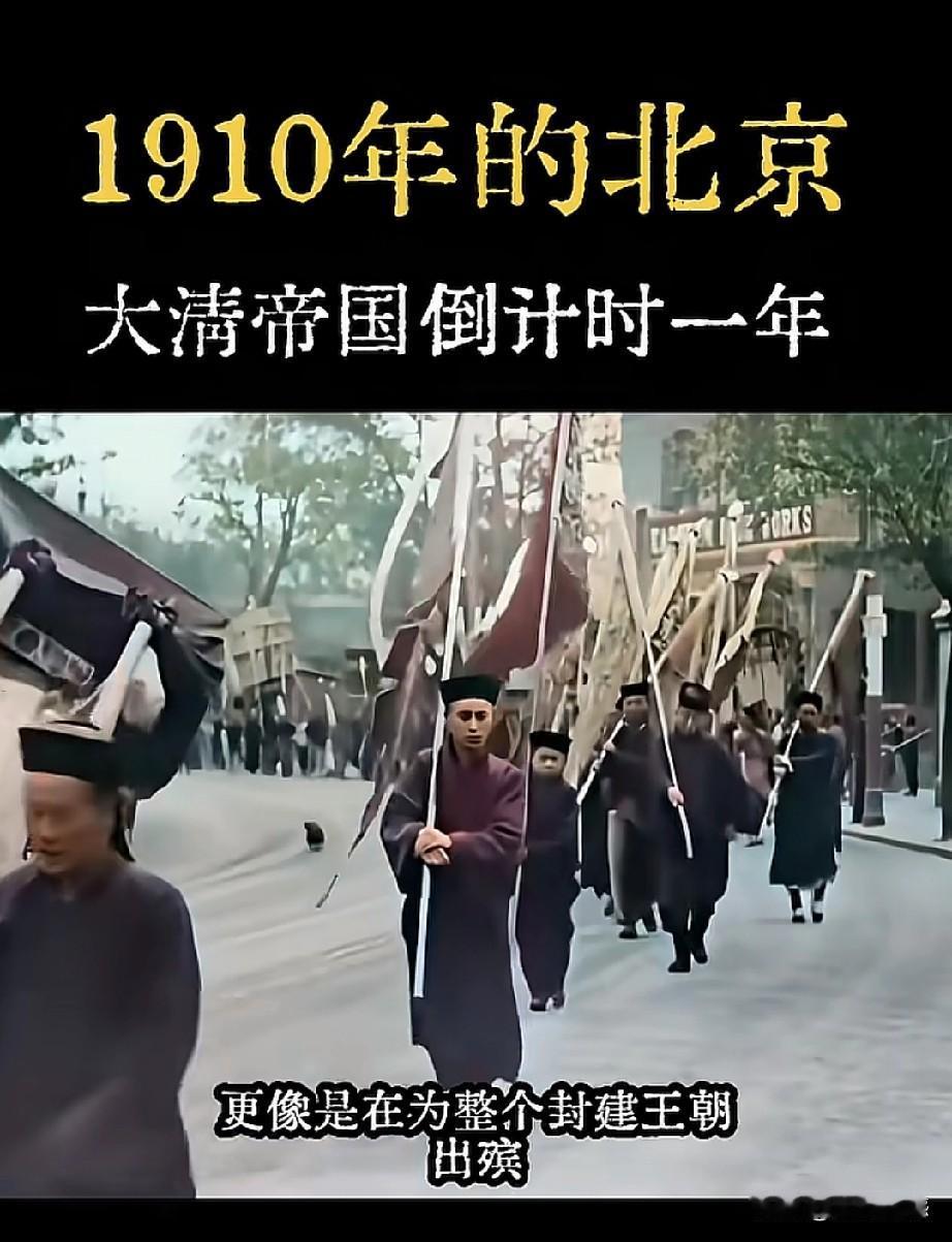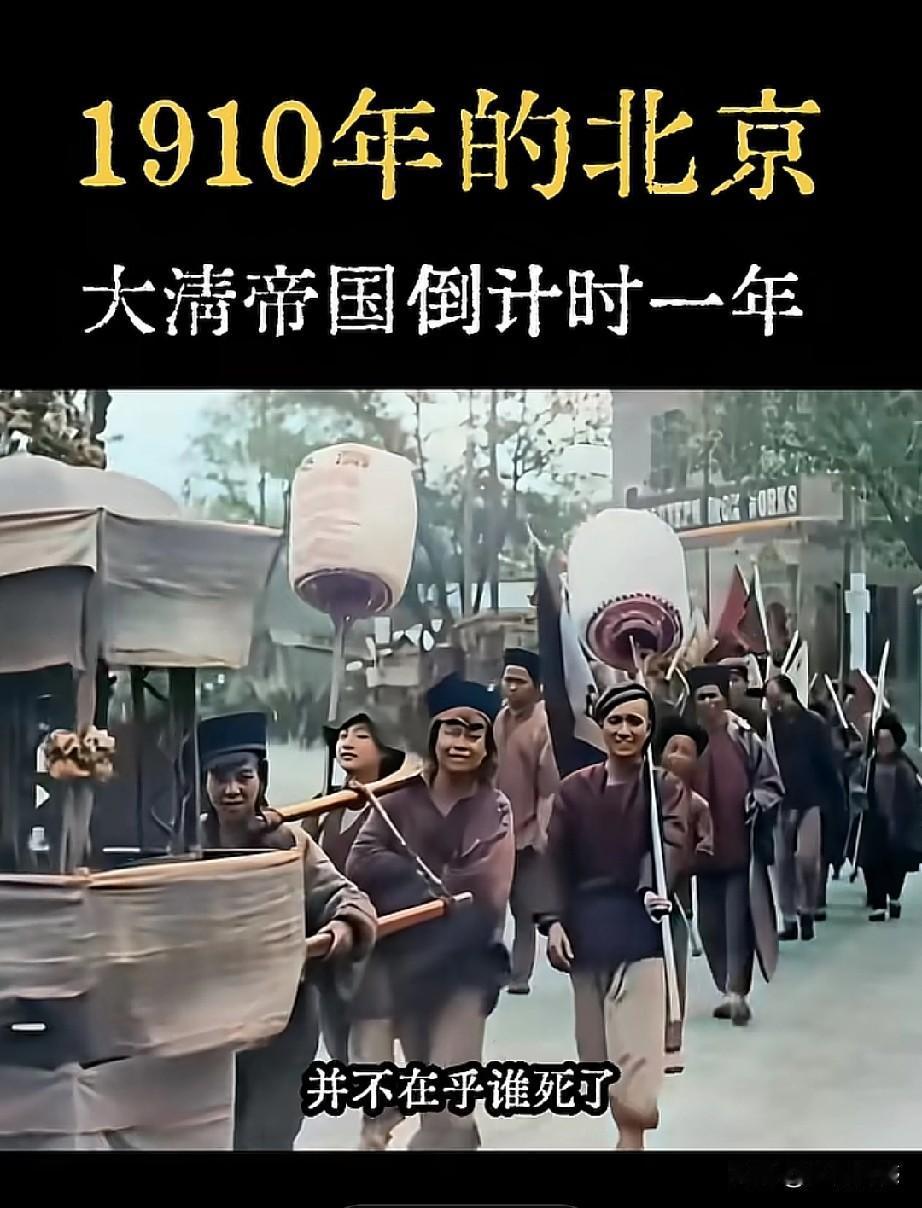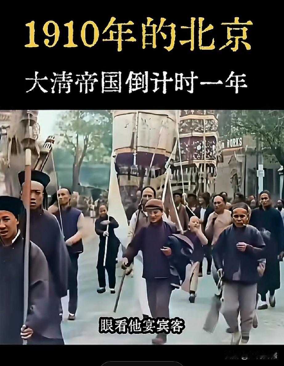 1910年时,就已经有纸卷香烟了,这真是让人没有想到的事情,如果没有看到这样的画面的话,还以为那时候的人就是抽烟袋呢,但是看这支送葬队伍的人,骑在马背上抽着烟,说明那时候已经有香烟了。这支浩浩荡荡的送葬队伍,让人看到了那时候的排场,这得花费多少钱啊!