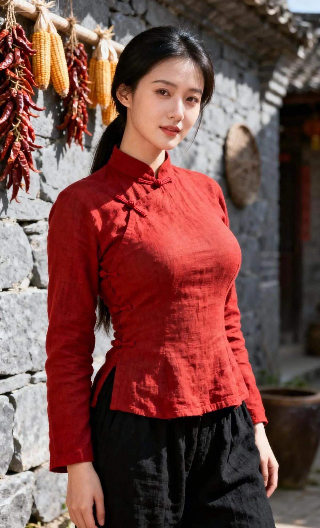 古典旗袍与红伞相映成趣,湖畔漫步,感受东方韵味。