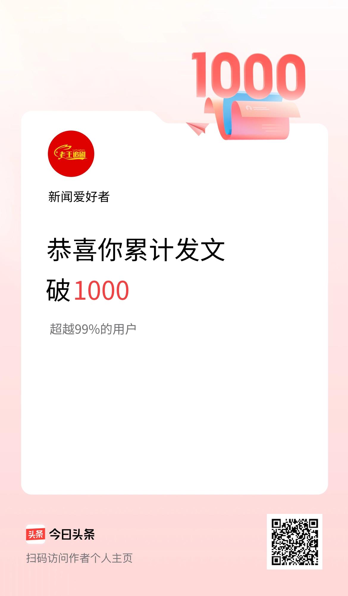 我在头条累计发布内容破1000啦!