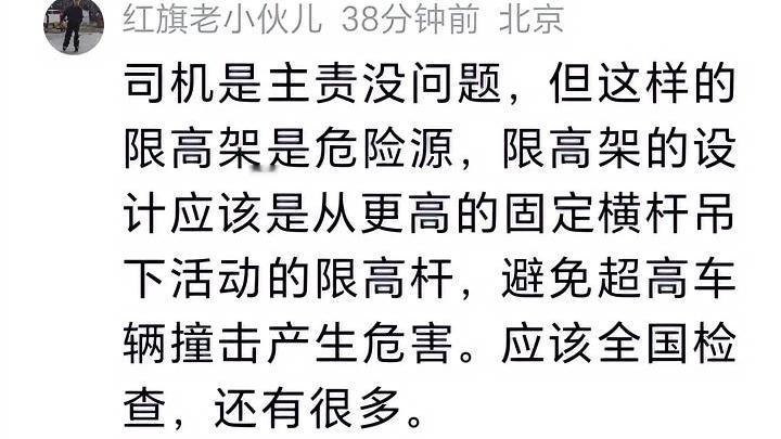 货车撞落限高架致行人不幸身亡,家属质疑声直指安全隐患,这起悲剧的背后,藏着双重失守的致命漏洞。 涉事路段限高架设置是否合规、审批是否齐全、警示标识是否醒目,成为家属追问的核心;货车行驶中对道路设施的观察预判是否到位,也成了争议焦点。 事发瞬间,限高架被货车撞击后坠落,恰逢行人途经,躲闪不及不幸被砸中,最终因伤势过重抢救无效离世。一场意外夺走鲜活生命,让一个家庭瞬间崩塌,家属悲痛之余,更难接受隐患长期存在却无人排查的现状。 众人皆知限高架是为规范车型、保障道路通行安全设置,可一旦违规搭建、维护缺位,本该护安全的设施,反倒成了拦路的“夺命架”;而驾驶员上路行车,对路况排查、设施观察本是基本义务,若疏忽大意、预判不足,也会让风险步步升级。 此次悲剧绝非个例,过往多地也曾出现限高架违规设置、标识不清引发的交通事故,有的车辆被卡、有的设施损毁,只是此次代价惨痛到让人难以承受。 违规限高架的隐患,藏在每一次未被整改的细节里;驾驶员的疏忽,藏在每一次心存侥幸的驾驶中,两者叠加,便酿成了无法挽回的惨剧。 这样的安全漏洞该如何彻底堵住?你认为该从哪些方面避免此类悲剧再发? 货车撞落限高架致人死亡 公共设施安全不容忽视 行车安全无小事