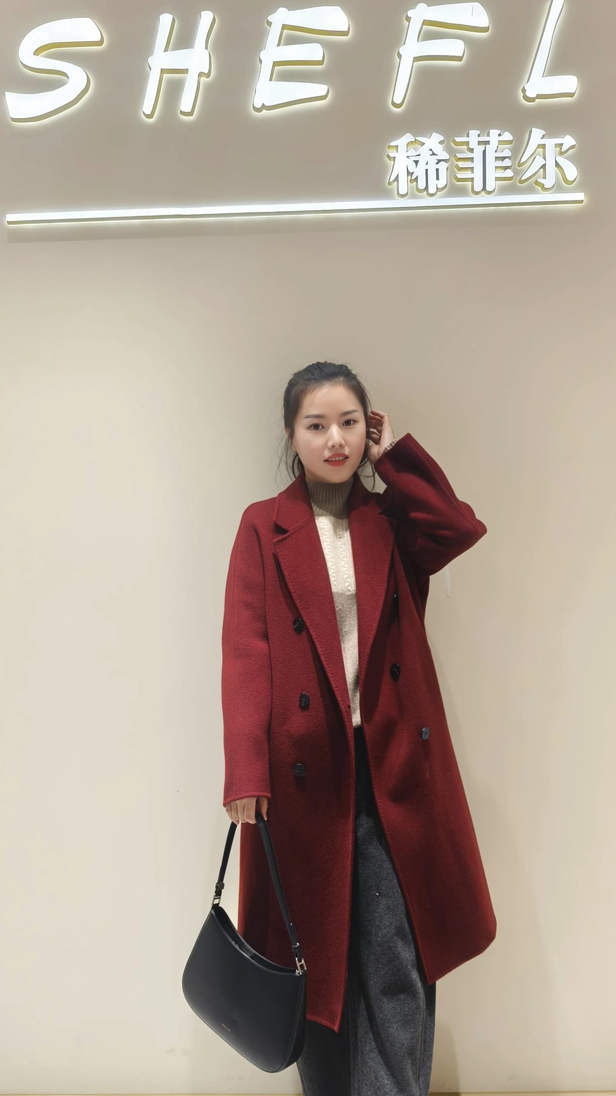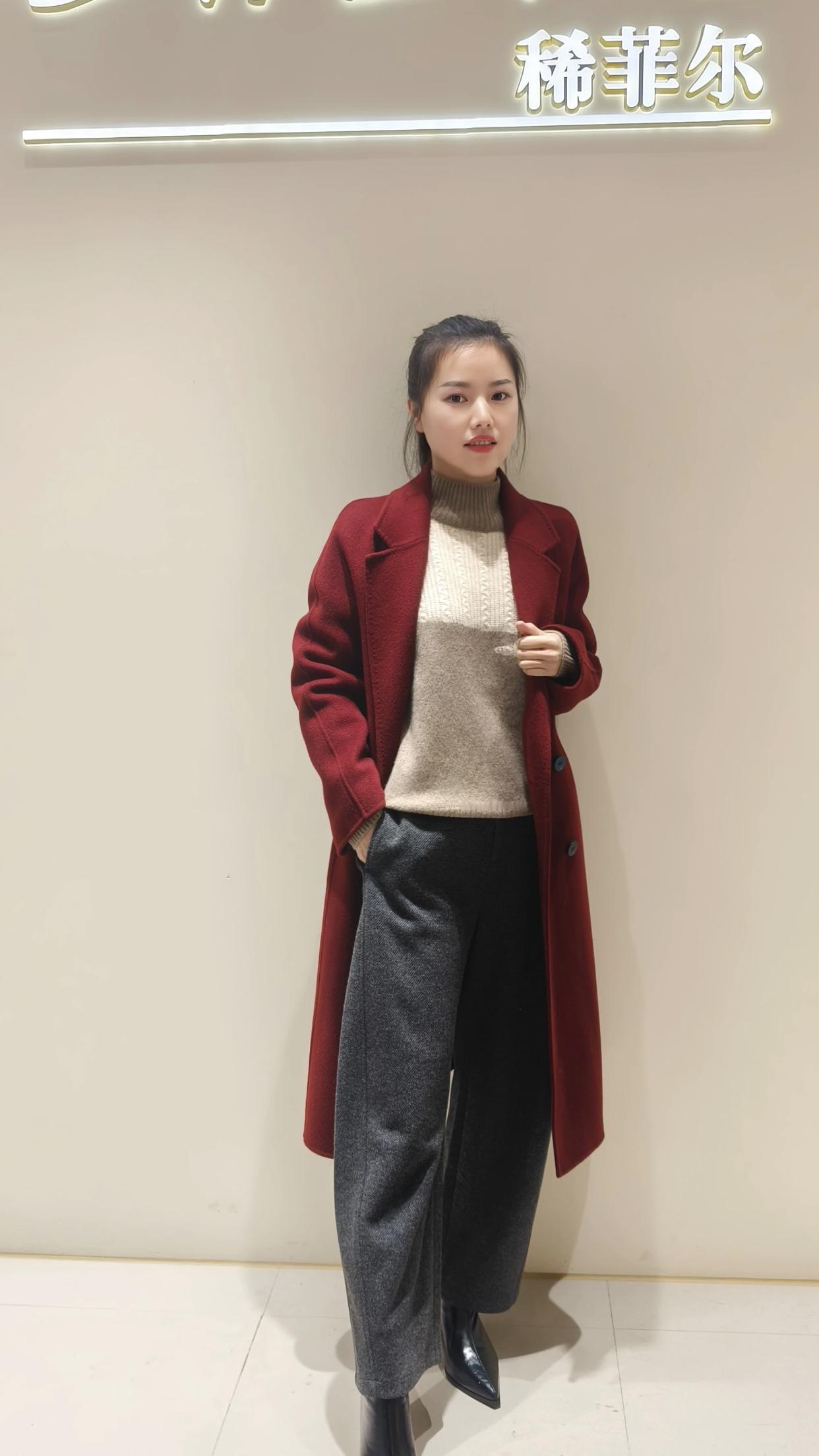 复古红大衣搭配高腰裤,简约又时尚!