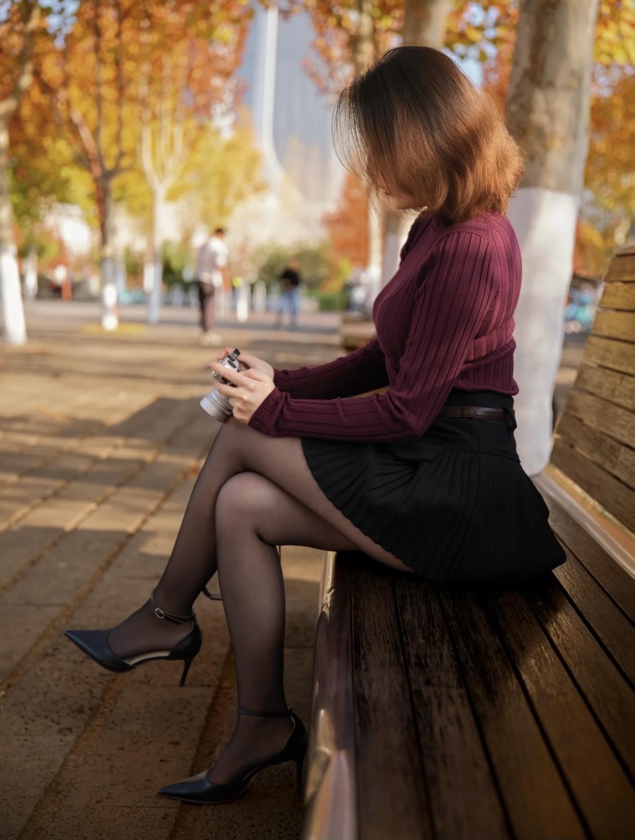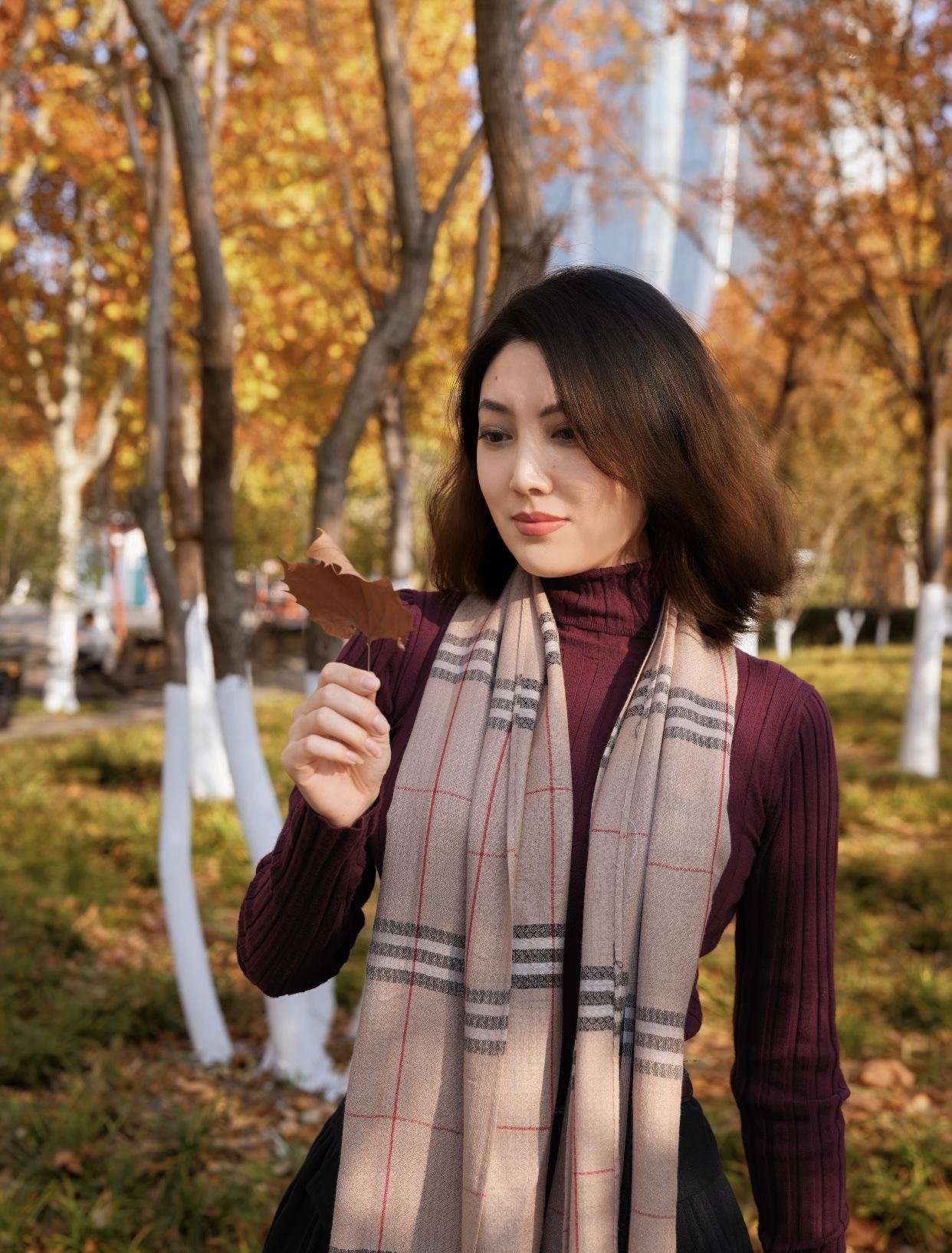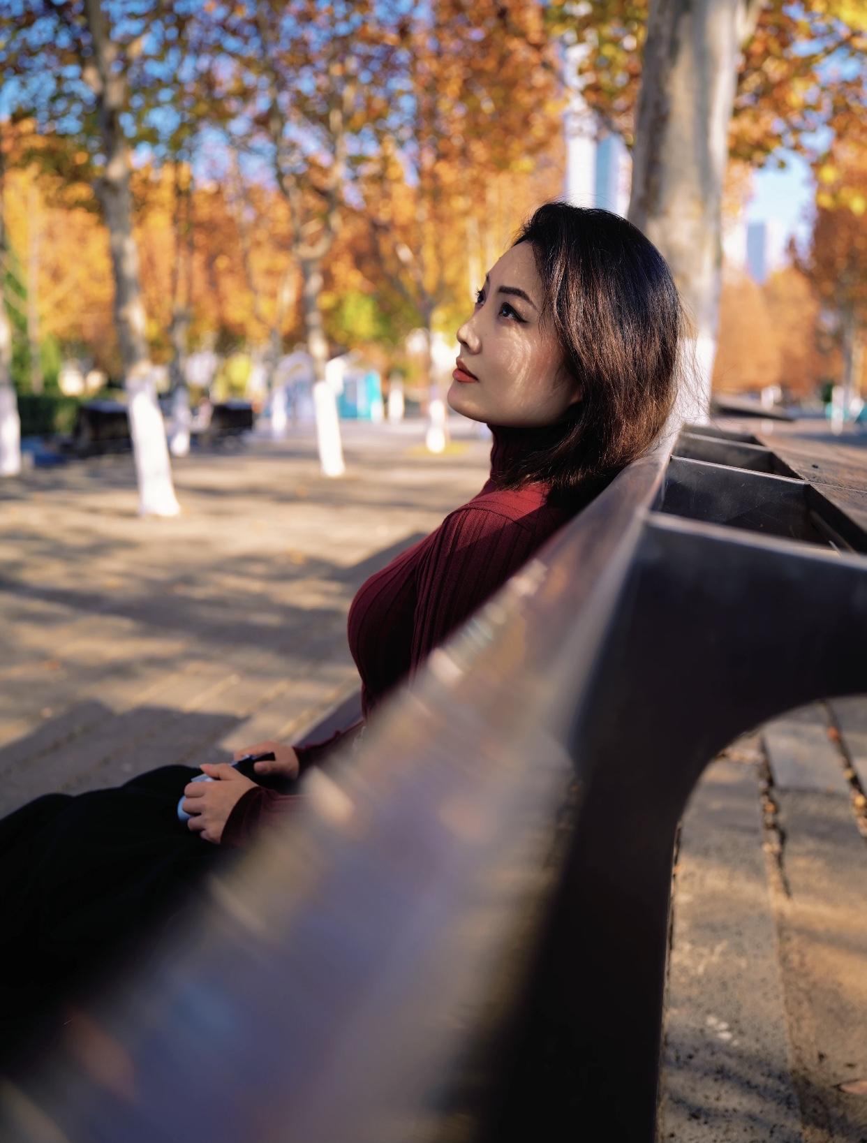 秋日暖阳下,优雅的棕色大衣与银杏叶相映成趣,尽显温柔与浪漫。