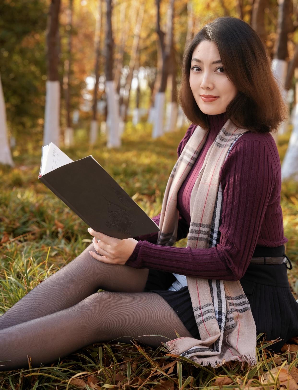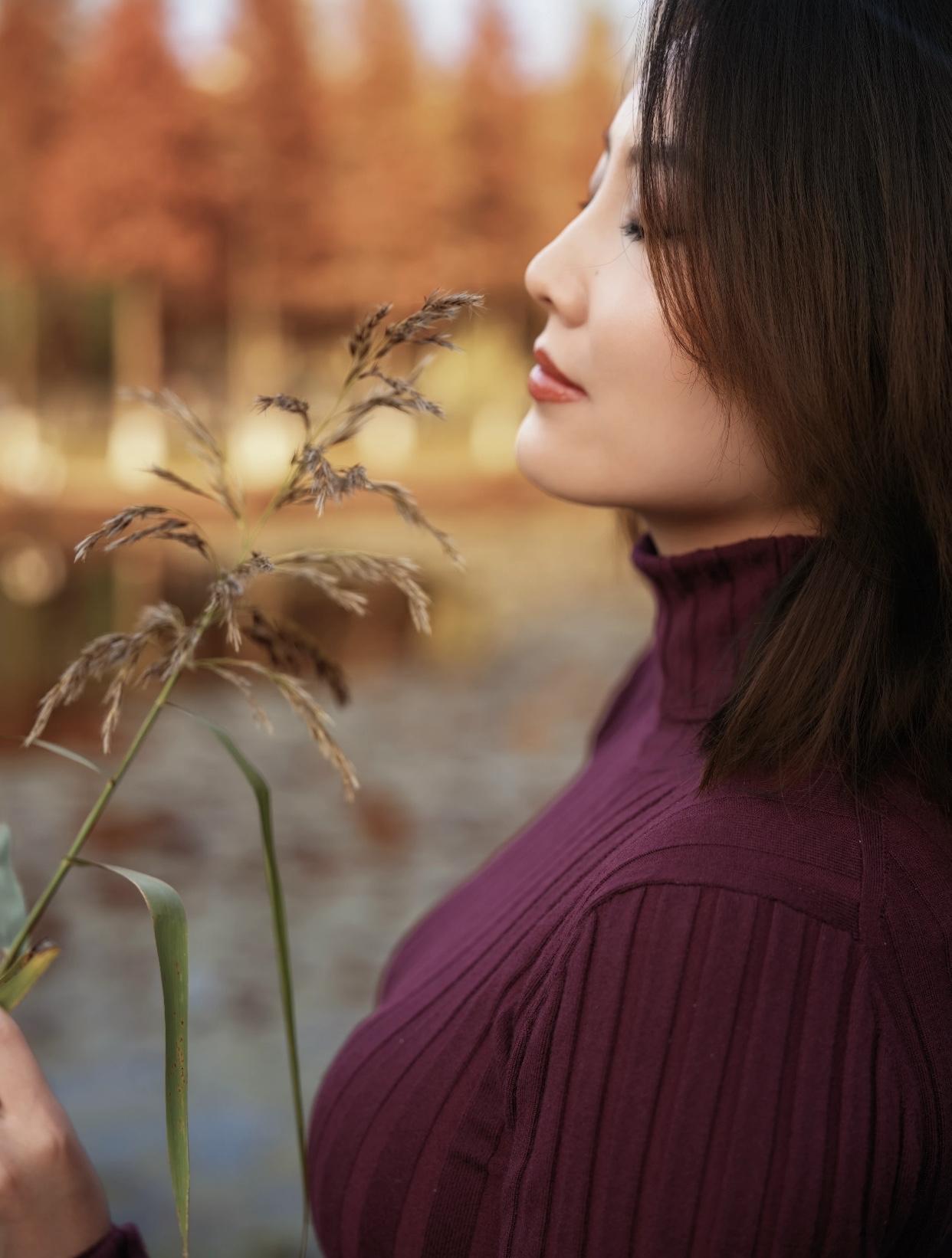 秋日漫步,暖阳洒落,红衣少女与落叶共舞。秋日少女照