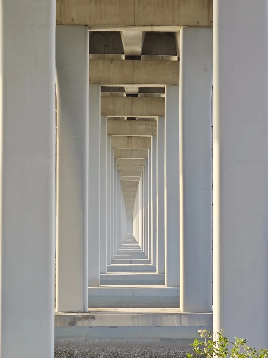 沿着狭长堤岸慢慢走