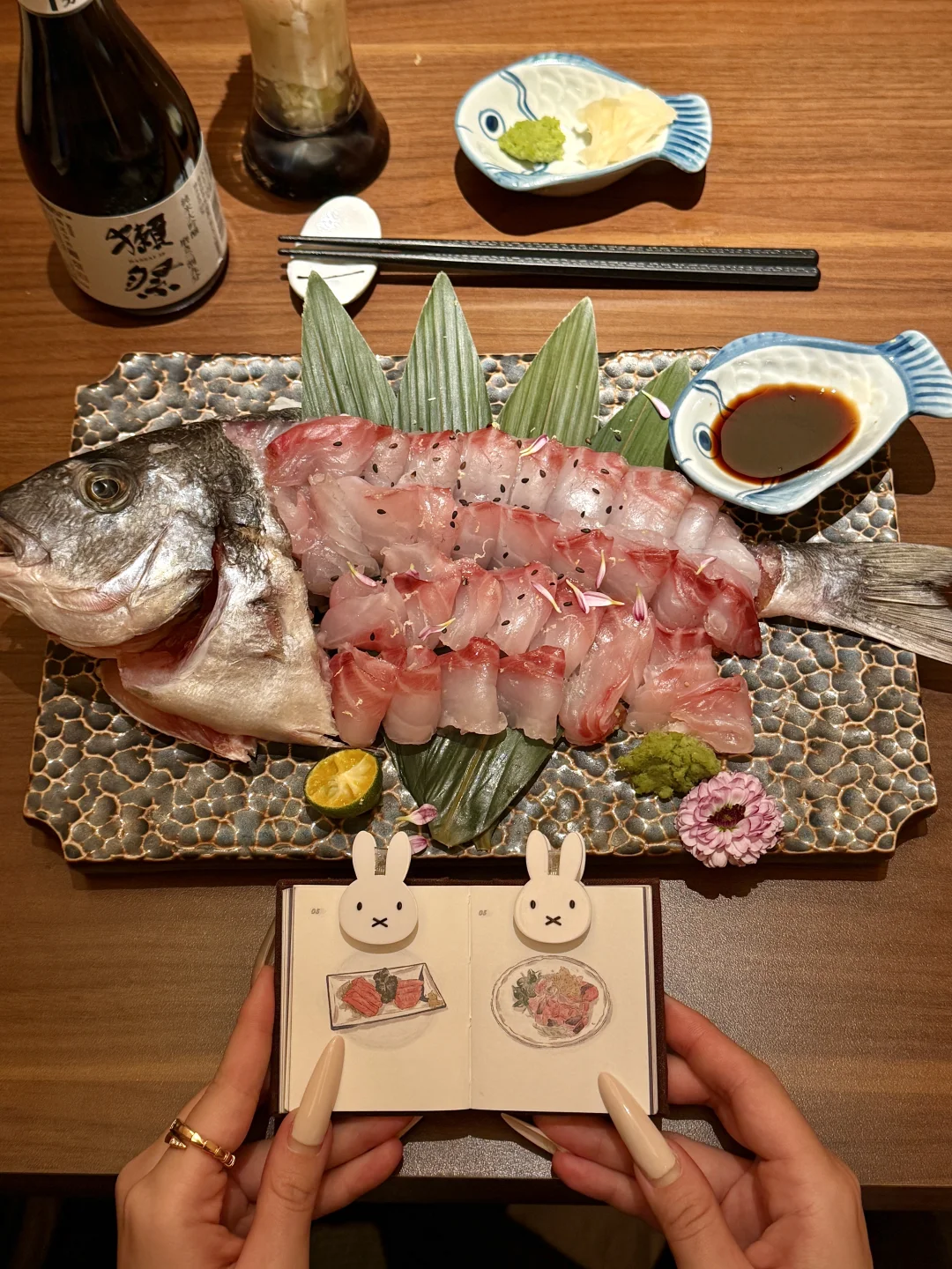 塔塔酱配酥脆炸虾🍤好好吃!!! 一大只炸虾酥脆入味,蘸上醇厚浓郁的塔塔酱相当美味 还有新出的干式熟成金鲷鱼🐟 软糯糯的口感我一个人吃完了整条! 还有三文鱼盖饭我也强推!!!