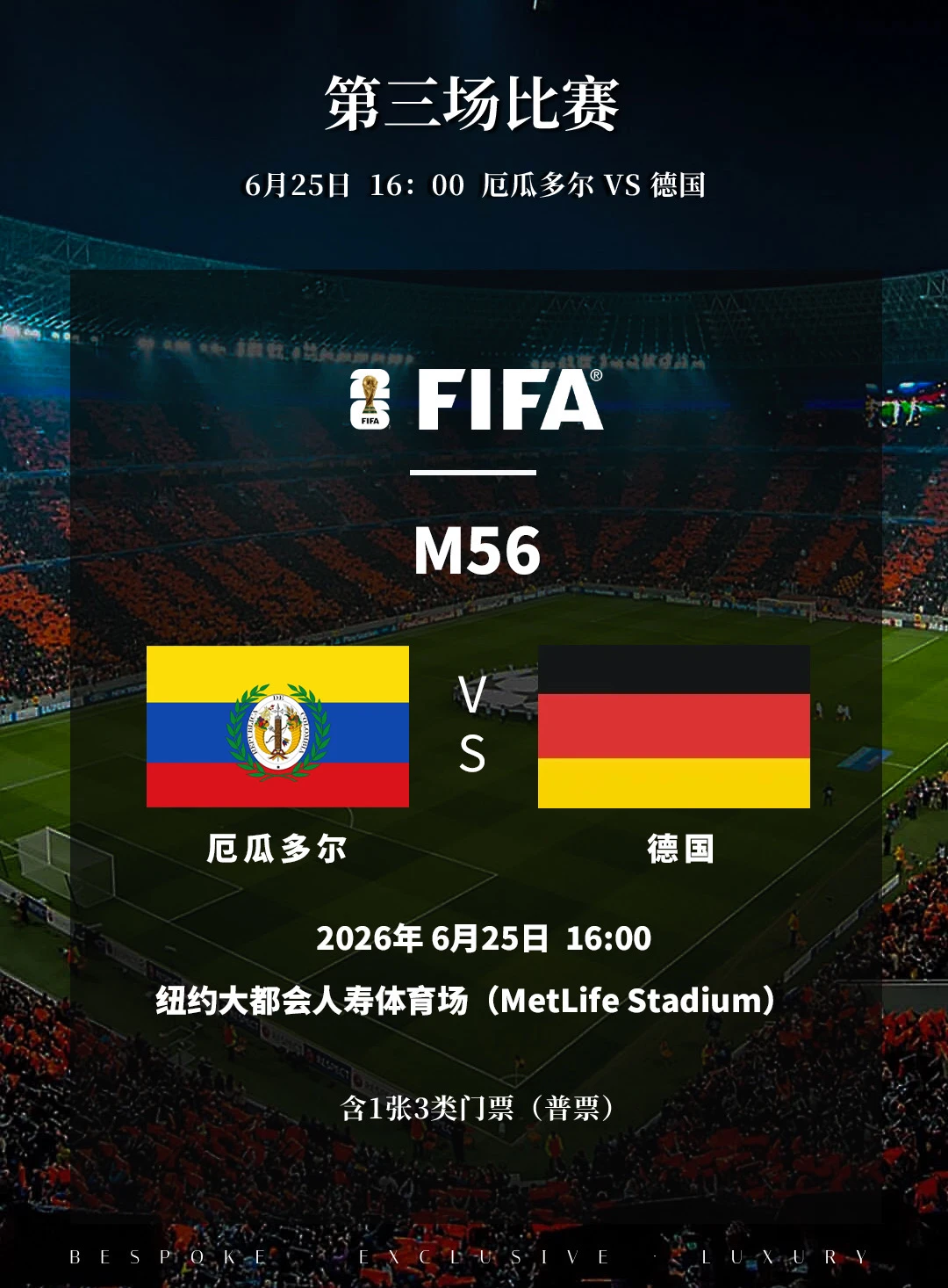 🇩🇪 M56 6月25日 厄瓜多尔VS德国(3类普票)