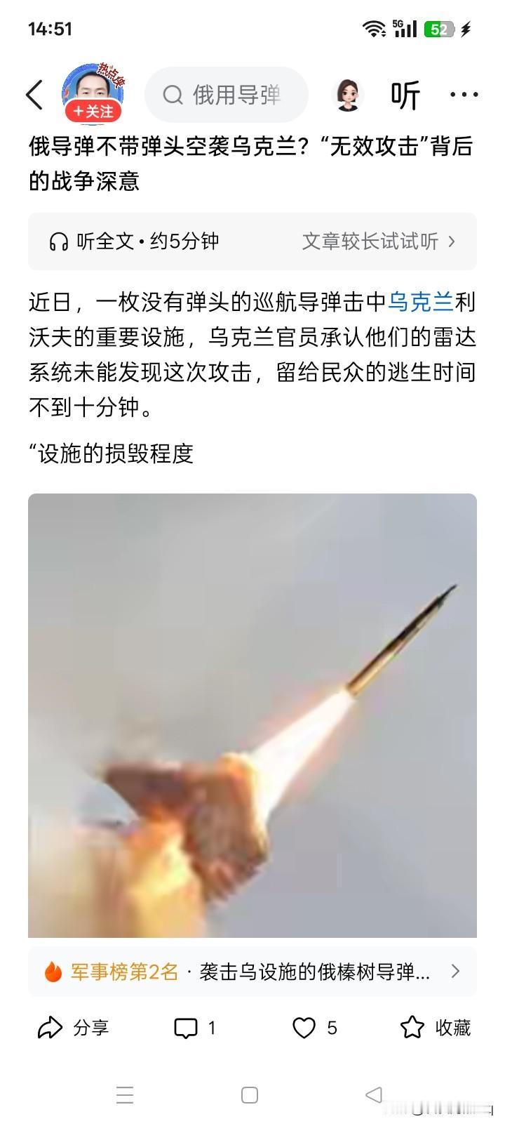 不带弹头是不敢? 俄罗斯向乌克兰发射了一枚“榛树”中程高超音速导弹,但导弹爆炸后显示,这枚导弹的弹头没装炸药,而好像装的是水泥和石头。 这是为什么呢?想来想去,估计大概就一个原因,俄罗斯不敢再杀死乌克兰更多无辜的平民。因为每当俄罗斯的导弹杀死杀伤乌克兰平民的时候,都会引来西方国家支持和援助乌克兰的一波反弹。目前的西方国家,并非就已经拿不出新武器援助乌克兰,而真正的原因,大概是他们认为没有必要。 如果俄罗斯的导弹再持续不断的大规模杀死杀伤乌克兰无辜的平民,彻底的激怒西方国家,估计西方国家一定会加大援助乌克兰的力度。即便是“榛树”导弹的高超音速无法被防空导弹系统拦截击落,但西方国家的武器,大概还是有能力袭击、摧毁俄罗斯制造“榛树”导弹的工厂、企业。而目前的俄罗斯,似乎并不愿意扩大和升级这场旷日持久,困难重重,麻烦多多的乌克兰战争。