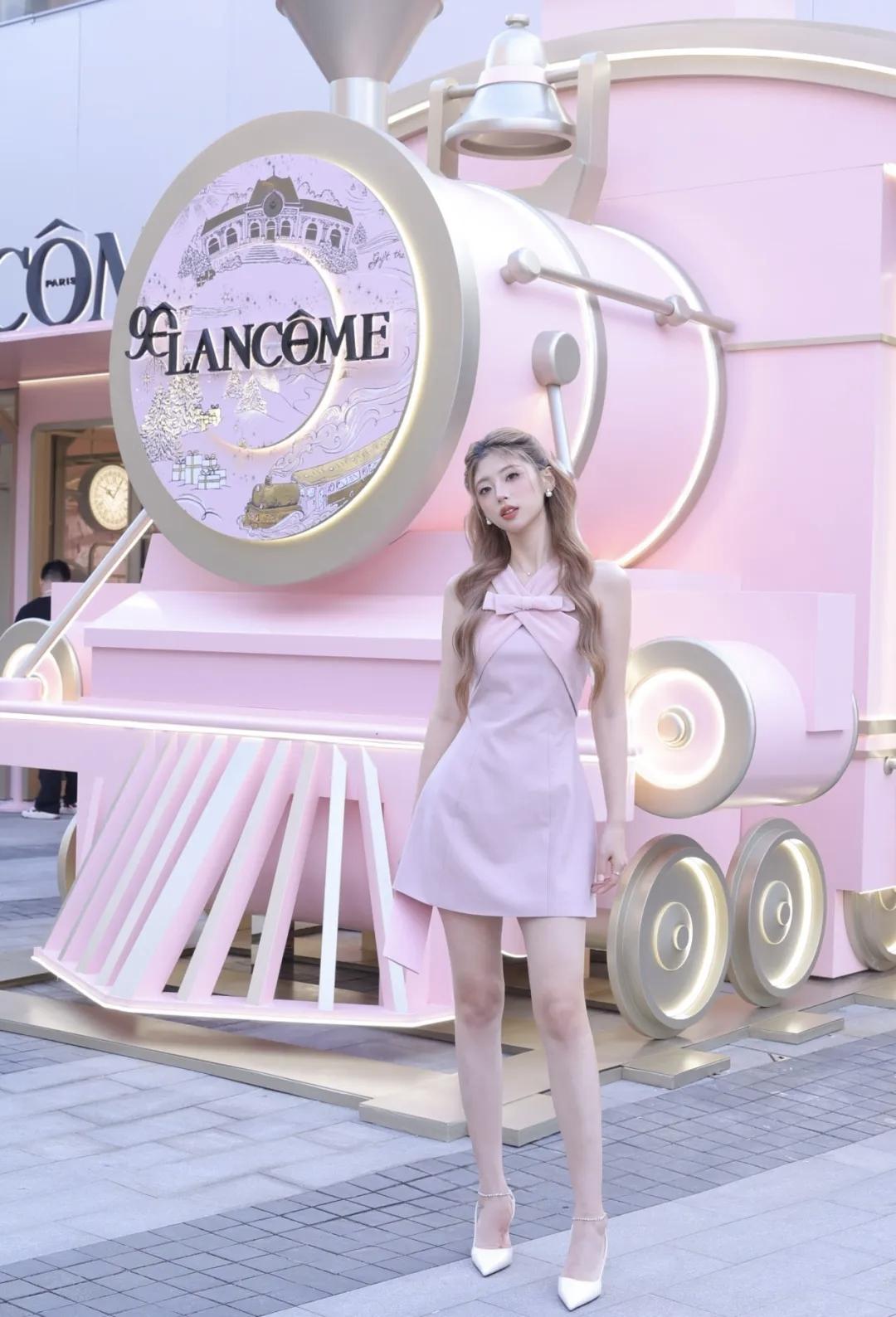 梦幻花海中的优雅少女,浅紫色连衣裙与鲜花相映成趣,仿佛置身童话世界。