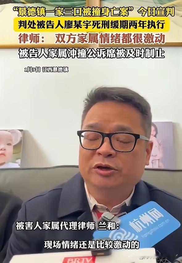 景德镇灭门案,廖某宇他爹现在估计肠子都悔青了!他后悔的不是儿子撞死三个人,原本死缓判决,好歹给儿子留了条活路,可他当庭一冲,全毁了! 事情的起因,说起来荒唐又可恨。廖某宇不过是因为和女友拌了几句嘴,竟把满腔怒火撒向了无辜路人,将车水马龙的马路当成了肆意妄为的赛道。脚下的油门一踩到底,飞驰的汽车瞬间变成了夺命的凶器。 三条鲜活的生命,就这样在毫无防备的情况下戛然而止。一个原本完整的家庭,顷刻间被撕得粉碎,从此陷入了无尽的黑暗与悲痛之中。这起案件的恶劣程度,早已突破了大众的心理底线。 可让人齿冷的是,从案件发生到庭审现场,凶手廖某宇自始至终都没有流露出半分愧疚之意。他的脸上看不到丝毫悔悟,仿佛那三条逝去的生命,不过是与他无关的尘埃。 受害者家属哭干了眼泪,喊哑了嗓子,只求法律能还他们一个公道,能让凶手以命偿命。 可一审判决的结果,却是死缓。这样的结果,让受害者家属难以接受,也让关注这起案件的公众议论纷纷。 更让人无法理解的是,面对这样的判决,凶手廖某宇的家属竟然还满心不满。尤其是他的父亲,在法庭之上,不仅说出了一番颠倒黑白的混账话,试图为儿子的罪行开脱,更是情绪激动地当庭冲撞。 他的所作所为,没有半分对受害者的歉意,没有半分对生命的敬畏,只留下了满屏的冷血与傲慢。他大概以为,这样的激烈举动,能为儿子争取到更有利的局面。殊不知,他的冲动,不仅没能帮到儿子,反而成了压垮骆驼的最后一根稻草。 法律的运行,固然要讲究证据,要遵循法定程序,可法律的最终目的,从来都是维护公平正义,从来都不能无视大众朴素的正义观。廖父在法庭上的这番闹剧,彻底点燃了民愤。 更重要的是,他的冲动之举,直接给了检察机关抗诉的绝佳理由。原本可能就此尘埃落定的判决,因为他这一闹,彻底被推翻重来。这哪里是在帮儿子,分明是亲手把儿子推向了万劫不复的深渊。 这起案件,早已不再是简单的刑事案件,不再是一个家庭对一个家庭的伤害。它更像是一场对社会底线的公然挑战。当一个人可以因为一己之私,就肆意剥夺他人的生命。 当一个家庭可以因为溺爱和纵容,就无视法律的威严和生命的重量。我们不禁要问,这样的行为如果不能得到最严厉的惩罚,那法律的尊严何在?社会的公平正义何在? 试想一下,如果视人命如草芥的凶手,能靠着家属的胡搅蛮缠就逃过应有的制裁,那我们该如何教育下一代?我们该如何告诉他们,生命是神圣不可侵犯的? 我们又该如何让他们相信,只要心存善念,遵纪守法,就能安稳地度过一生?这起案件,就像一面镜子,照出了人性的丑恶,也照出了我们对公平正义的迫切渴望。 法律的利剑,从来都不该偏袒任何一方。它既要守护程序的正义,更要捍卫结果的正义。对于这样性质恶劣、民愤极大的案件,唯有依法严惩,才能告慰逝去的亡魂,才能抚慰受害者家属的伤痛,才能还社会一个公道。 廖父的冲动,最终让儿子自食恶果。这何尝不是一种警示,警示着每一个人,都要对法律心存敬畏,对生命心怀尊重。任何试图挑战法律底线、践踏生命尊严的行为,最终都必将受到法律的严惩,都必将付出惨痛的代价。