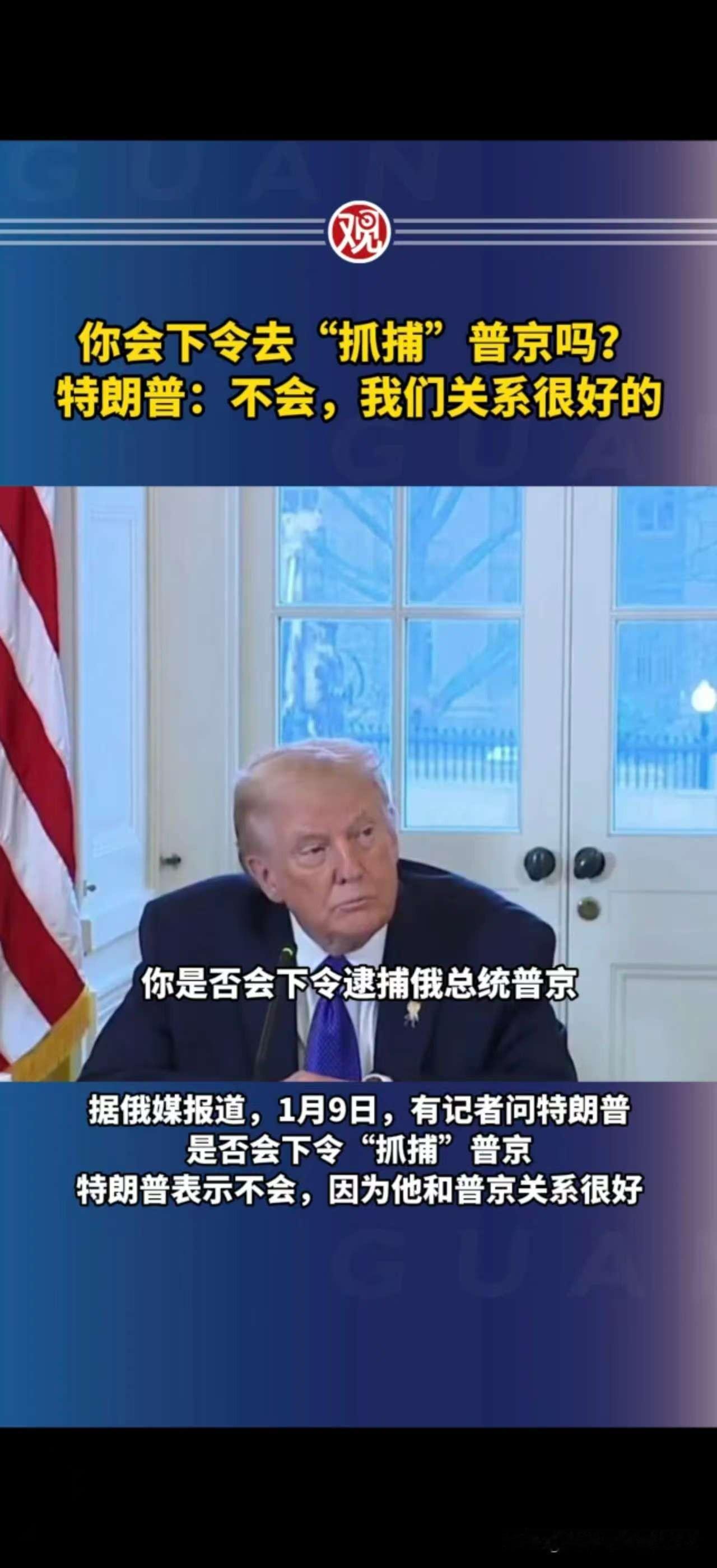 泽连斯基希望美国抓捕普京,特朗普说没有必要,我们关系很好。假如美国真的抓捕了普京,会是一个什么样的局面呢?三种答案可能占上风,一是美国不敢抓捕普京;二是美国突破不了普京的保护圈,抓捕不了普京;三是如果普京被抓了,俄罗斯会对美国发动核战争。这三种观点,俄罗斯也是这样想的。但是,说归说,想归想,美国的计划中肯定不只是马杜罗一人,也不只是针对敌对国家,盟友的领导人弄不好也在名单上。这种情况,完全是由美国的全球战略决定的。顺之者昌,逆之者亡,是至高无上皇权的体现,用当代的说法就是“独裁”。世界熙熙攘攘都是为了争夺利益而来,强大的一个重要目标就是: 普天之下,莫非王土;率土之滨,莫非王臣。所有的霸权或霸权野心都是这样想的,也这样做的,非特朗普独创,也非特朗普专利。普京也在想,也在用。根本的区别是:俄罗斯与美国在实力上相差甚远。俄罗斯的实力称霸欧洲都不济,美国却可以称霸世界。这也是特朗普“我不需要国际法”的底气所在,言下之意就是“能奈我何”!!!