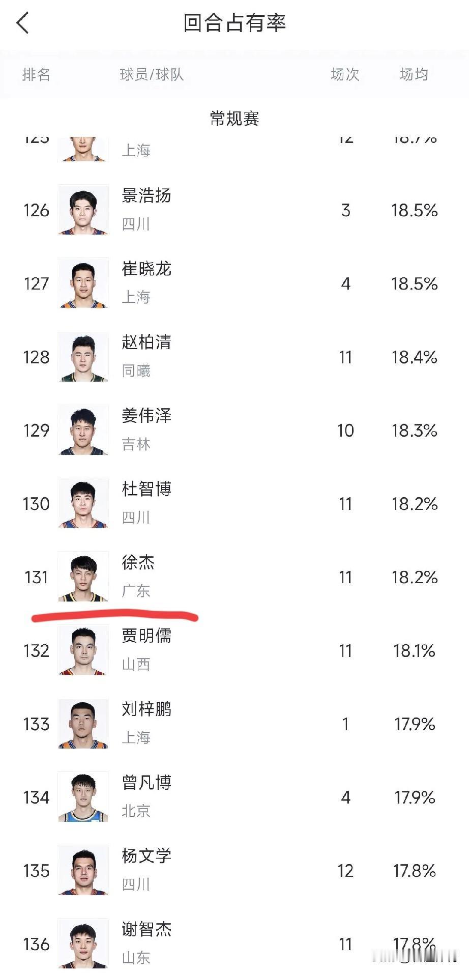 三分球命中率高达42.9%的徐杰,回合占有率竟在CBA排130名开外,杜锋给到徐杰的球权,是不是太少了呢? 像其他队,本赛季表现出色的几名后卫,郭昊文、赵睿、庞峥麟、陈盈俊等人,回合占有率可都是排在60以内,排名整整比徐杰高了一倍! 以徐杰本赛季的进攻状态,三分命中率,这个回合占有率属实是太低了点。 个人认为,杜锋还是应该给到徐杰更多球权,更多出手权,不要削弱了徐杰的能力。
