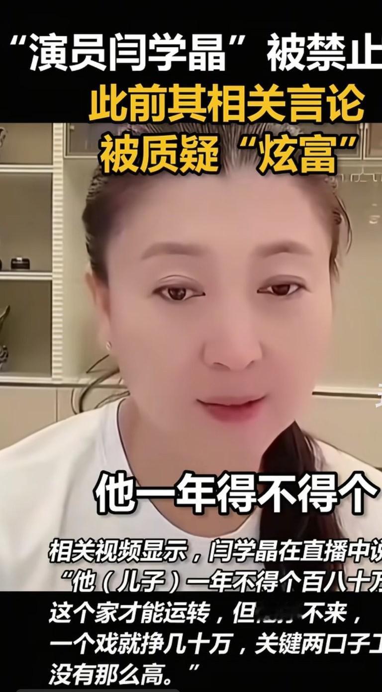 演员闫学晶被禁止关注,其实这些日子一直不消停,被禁止关注是迟早的事。这回终于来了,她不停的炫富,同时还瞧不起农村人。农村人怎么的?我们吃的粮食吃的蔬菜,哪一样不是农民种出来?有两个钱就了不起,感觉到谁也看不上。说一年花上百10万,年收入几十万,她儿子根本就不够花,但他不知道民间疾苦,很多人一年挣几万块钱的有的是吧,超过20万的收入都是极少数。她却在哭穷卖惨,能不引起愤怒吗?引起愤怒她还不在乎,还敢怼网友,说咋地咋地的,绝不认怂,可见她尽管是有点儿钱,但是她的文化水平也不高,从来不知道低调做事。被禁关注也是迟早的事。这不就来了吗?