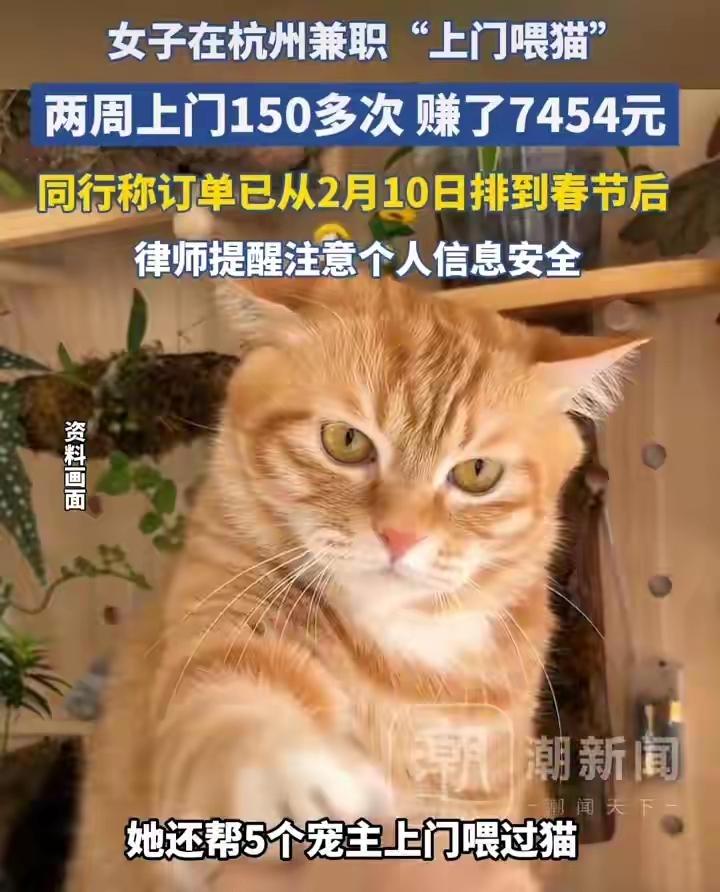 浙江杭州女子春节两周狂赚7545元真相曝光!上门喂猫背后,藏着你不知道的“情绪经济”与城市孤独症的解药! 当一则“浙江杭州女子兼职上门喂猫,两周狂揽7545元”的消息刷爆网络,无数人第一反应是羡慕与质疑交织。有人感叹这简直是“带薪撸猫”的理想职业,也有人冷静算账认为这不过是体力换钱的辛苦活。但剥开收入数字的外壳,我们看到的远不止一门副业那么简单。 这个故事的主角小黄,在杭州从事上门喂宠服务已有四年。去年春节前后的两周里,她上门服务超过一百五十次,日均奔波十余户人家。她的工作内容从基础的喂食换水到陪玩梳毛,甚至实时视频汇报宠物状态。这份看似简单的工作,却精准踩中了当代都市生活的两个隐秘痛点。 其一是城市孤独经济的崛起。越来越多的年轻人选择与宠物为伴,宠物不再是动物,而是情感寄托的家人。当主人因出差或假期离家,那份对“毛孩子”的牵挂催生出了精细化的照看需求。他们不满足于冰冷的笼子寄养,渴望宠物留在熟悉的环境中获得陪伴。这种情感需求,才是愿意为一次上门服务支付数十甚至上百元的根本动力。 其二是当代青年对灵活自由的深层渴望。在格子间与通勤路上耗尽热情的人们,内心向往一种能自我掌控、将兴趣与收入结合的工作方式。上门喂猫恰好提供了这样一种可能:时间自主,与可爱动物互动,用劳动直接换取报酬。它像一扇窗,让很多人窥见了逃离机械重复生活的另一种微光。 然而高收入的另一面,是鲜为人知的高强度付出。日均十户意味着精确规划路线,顶着风雨穿梭于城市各个角落。每一次开门都是进入一个陌生空间,承担着宠物安全乃至屋内财物无形的责任。与宠物的互动也并非总是温馨,可能遭遇警惕、应激甚至意外攻击。这钱挣得并不轻松。 更值得深思的是,这股风潮折射出社会就业结构的微妙变化。当“上门喂猫”、“全职儿女”、“摆摊创业”等话题频繁引发热议,背后是人们对多元化生存路径的积极探索。它不再仅仅关于赚钱,而是关于在不确定的时代里,重新寻找工作与生活、价值与收入的连接点。 当然,这股热潮也伴随着显而易见的隐忧。服务标准不一,责任界定模糊,从业者安全与权益保障缺失,都是尚未规范的灰色地带。它像一面镜子,照见新兴需求的同时,也映出配套制度亟待跟上的现实。狂欢之下,理性入局比盲目跟风更重要。 从本质上讲,上门喂猫的走红,是一场关于信任与托付的城市温情实验。主人将家门钥匙与心爱宠物交给陌生人,托付的是一份沉甸甸的信任。而从业者用专业与细心回馈这份信任,完成的是一次次关于责任的情感契约。这或许才是其最打动人心的地方。 所以,当我们讨论这七千多元的收入时,不妨看得更深一些。它不只是一个个简单的喂养动作的叠加,而是情感价值在市场经济中的一次显性量化。它告诉我们,在这个时代,用心满足他人内心深处的情感需求,本身就是一种强大的竞争力。 未来,类似的“微技能变现”或许会越来越多。无论是上门照料宠物,还是代为整理收纳、养护植物,其内核都是将人的善意、专业与耐心,转化为可交易的服务。社会在细化,需求在深化,每一个被发现的痛点,都可能为有心人铺就一条新的小径。 (来源:综合自潮新闻、钱江晚报等公开报道及网友讨论) 宠物经济 灵活就业