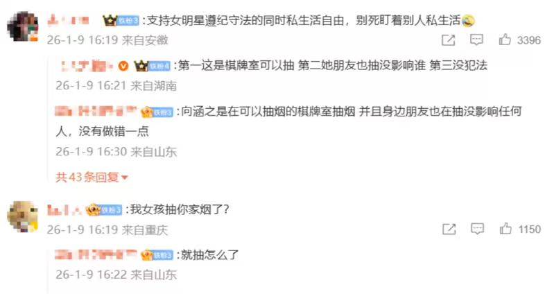 演员向涵之因在棋牌室抽烟发布道歉声明 演员向涵之因在棋牌室吸烟的行为,成为近日网络热议的话题。1月9日,向涵之通过个人微博发表道歉声明,表示其在室内抽烟不仅影响了他人,也带来了不良示范效应,对此深感抱歉。 此事源于1月5日,有博主拍摄到向涵之与朋友在棋牌室打麻将时吸烟的画面,随后相关话题迅速登上热搜。 向涵之在声明中强调,会认真反省自己的不当行为,并感谢粉丝和网友们的提醒和支持。此次事件反映出公众人物在社交场合的行为确实具有广泛的社会影响力,需要更加自律和谨慎。