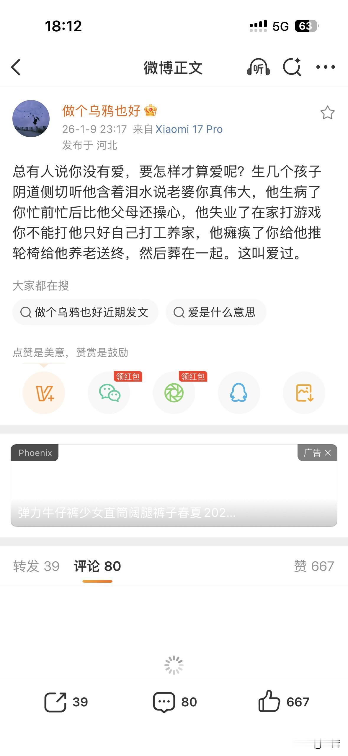 木子美对爱和婚姻嗤之以鼻,也可以理解。手里无股,自然看空,难道哭唧唧酸溜溜的看多吗? 但世间还是很多饮食男女,遇到合适的另一半,拿到欢喜适配的人生剧本,相伴到老,互相喜欢互相支持互相包容。 剧本不一样,角色经历也不一样,在你剧本里出现的NPC也不一样。 只能说木子美出走半生,归来仍是那个从来不变的自己吧。