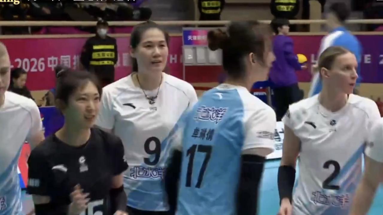 正直播天津女排VS北京女排,第一局双方打得很胶着!天津女排新的进攻三叉戟首发:刘