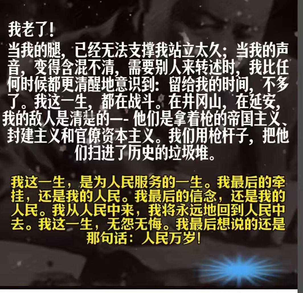 喊出“人民万岁”的人,怎会有错? 当今时代,有人追流量明星,有人慕权贵财富,可总有一个名字,穿越几十年风雨依然滚烫——他就是毛泽东。 谁能想到,这位在天安门城楼上高呼“人民万岁”的伟人 ,一生两袖清风,手上从未沾过私财;为了革命胜利,他先后失去杨开慧、毛泽民等六位至亲 ,把家国情义刻进骨髓。陕北沟壑间,他以800人牵制20万敌军,用“蘑菇战术”扭转乾坤 ;窑洞里的油灯下,他运筹千里,指挥三路大军挺进中原,开启战略反攻的序幕 。 有人曾质疑他的选择,可历史早已给出答案:放弃延安是为了收复延安,看似冒险的决策背后,是对民心向背的精准把握。他让剥削者胆寒,让老百姓挺直腰杆,用一生践行“为人民服务”的誓言。 1976年的那个秋天,百万群众自发送别,恸哭之声响彻长安街 ;如今街头巷尾,仍有人自发缅怀,他的思想依旧指引着前行的方向。所谓对错,民心便是标尺;所谓伟大,不过是把人民放在心尖。 他的精神如日月昭昭,照亮民族复兴的道路。当我们享受安宁生活时,不该忘记:是这位纯粹的无产阶级革命家,用一生奉献换来了山河无恙。这样的人,人民永远铭记,历史永远镌刻。你心中,是否也藏着对他的深切怀念?