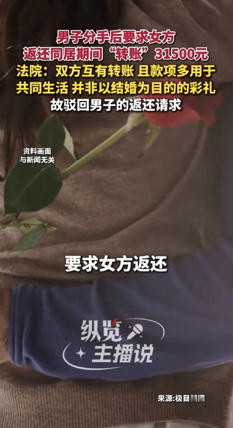 一男子和女子网恋奔现同居后,前前后后给女友转了31500元,不料,两人感情破裂分手后,男子竟然起诉女友,要求对方返还全部转账。法院:不予支持! 2022年,刘某和张某在网上聊得火热,奔现后直接同居,那叫一个甜甜蜜蜜。热恋期的人嘛,转账发红包都是常态,刘某前前后后给张某转了31500元,其中包含了五笔520元的“表白转账”,这数字谁看了不说一句浪漫。 不过话说回来,网恋奔现的激情,往往经不住柴米油盐的磋磨。 张某也没少为两人的小日子花钱,买生活用品、添新衣服,桩桩件件都是实打实的付出。 感情里的账,本就该是你情我愿,哪能只算自己的付出,忽略对方的投入? 果不其然,到了2023年10月,这对曾经的甜蜜情侣还是走到了分手这一步。 让人没想到的是,刘某转头就把张某告上了法庭,张口就要对方返还31500元。 这操作属实有点下头,合着恋爱时的心甘情愿,分手后全变成了“借贷”不成? 法院审理的时候,把这笔账算得明明白白:双方互有支出,刘某的转账大多用在了两人共同生活上,既不是彩礼,也没有明确的借贷凭证。 最后,法院直接驳回了刘某的诉求。 其实这事说到底,就是给所有恋爱中的人提了个醒:恋爱可以谈,钱可以花,但得拎得清。 不是所有转账分手后都能要回来,那些心甘情愿为感情的投入,本就是恋爱的一部分。 别等到感情散了,才想着把付出的钱一分一厘都讨回来,既失了体面,也未必能如愿。