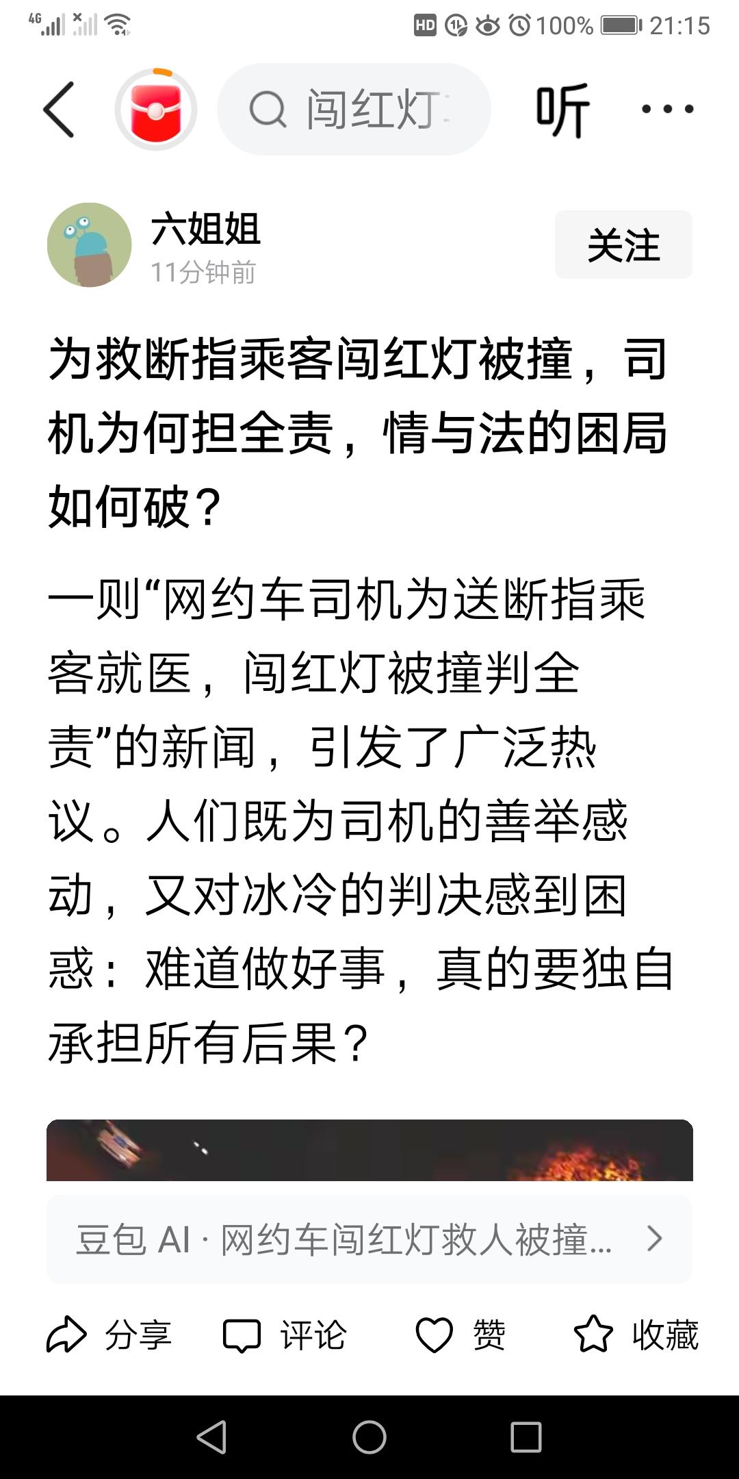 为救断指乘客闯红灯被撞,司机为何担全责,情与法的困局如何破? 一则"网约车司机为送断指乘客就医,闯红灯被撞判全责"的新闻,引发了广泛热议。人们既为司机的善举感动,又对冰冷的判决感到困惑:难道做好事,真的要独自承担所有后果? 这起事件像一面镜子,折射出我们社会中那些看似温暖却又充满矛盾的角落。一个普通的司机,为了乘客的生命安全,毅然选择了闯红灯,只为争取宝贵的救治时间。这种善意和责任感,本应得到理解与尊重,可现实却给了他沉重的打击——事故发生后,他被判定为全责,似乎善良成了罪过。 你是否曾在生活中遇到过类似的困境?当我们伸出援手,期待的只是温暖和感激,却可能迎来法律的冷漠和社会的质疑。司机的善举,背后隐藏的是对生命的敬畏和对责任的担当,但为什么在法律的天平上,却总是偏向“规则”而非“人情”?这难道不是我们这个时代的悲哀吗? 更令人扼腕的是,很多人开始质问:难道做好事就要付出如此惨痛的代价?是不是我们的社会,只认“规则”,却忽略了“人性”?在这场看似简单的交通事故中,我们看到的不仅仅是一场法律判决,更是一场关于“责任与善意”的深刻反思。 从某种角度看,这起事件揭示了一个更深层次的问题——我们对“善”的定义是否过于僵硬?在现实生活中,善意和责任常常被绑架在繁琐的法律条文中,变成了“谁该承担责任”的标签。司机的善行,似乎变成了“被动承担后果”的代价,而不是一种人性光辉的展现。 这也让我们不得不问:法律是否应该有更多的弹性?是否应该在“规则”与“人情”之间找到一个平衡点?毕竟,社会的温度来自于每个人的善意,而不是冷冰冰的判决书。我们期待一个既能守规则,又能理解善意的社会,能在法律的框架下,给予那些在关键时刻选择“善”的人更多的宽容和理解。 这起事件,或许只是冰山一角,但它折射出的,是我们每个人都可能面对的伦理困境。面对“法与情”的冲突,我们是否还能坚持那份最初的善良?或者,我们要学会在规则中寻找那一丝人性的光亮?这个问题,值得我们每一个人深思,也希望能引发更多的讨论——因为,善良,从来都不应成为一种负担,而应是一份值得被守护的希望。交通事故定责 交通事故责任