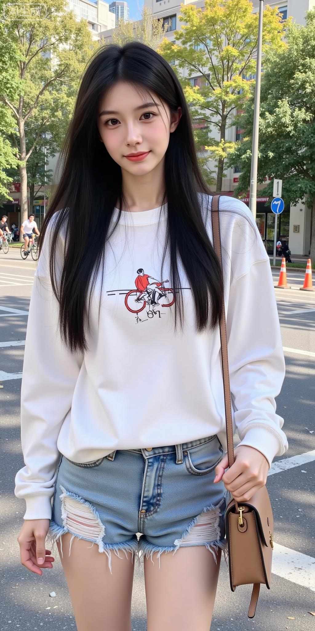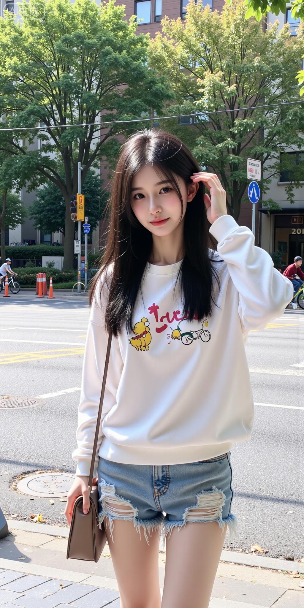 街头元气甜妹的松弛感穿搭 奶白卡通卫衣搭破洞牛仔,甜酷感刚好踩在审美上~长发被风轻撩的瞬间,连街边的树影都跟着柔和起来✨ 这是什么把“青春感”焊在身上的妹妹!甜酷风牛仔穿搭