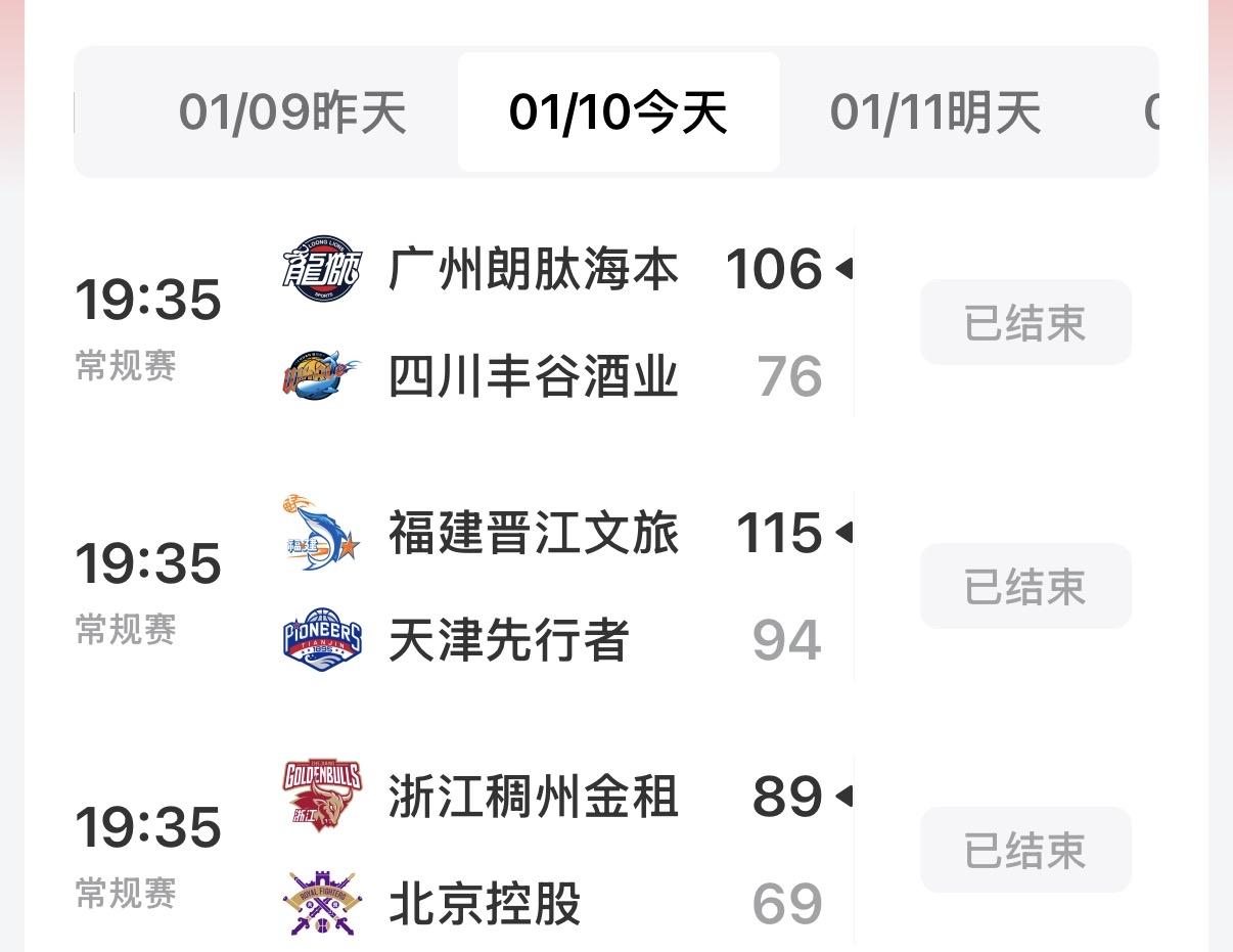 CBA常规赛今天的三场比赛索然无味! 主场作战球队均取得大胜! 广州大胜四川30分! 福建大胜天津21分! 浙江稠州大胜北京北控20分! 现在有两个疑问! 一是张庆鹏什么时候下课? 而是四川男篮什么时候迎来首胜?