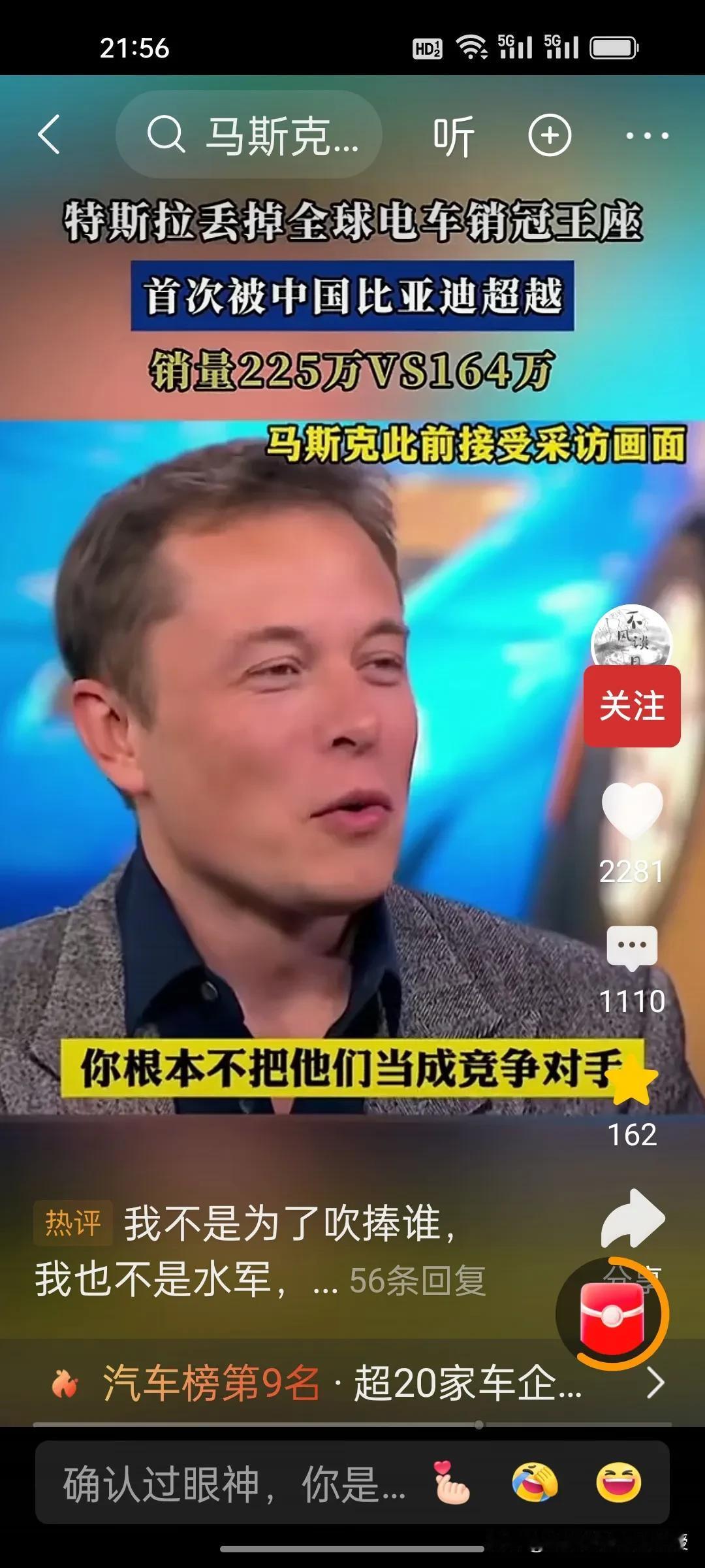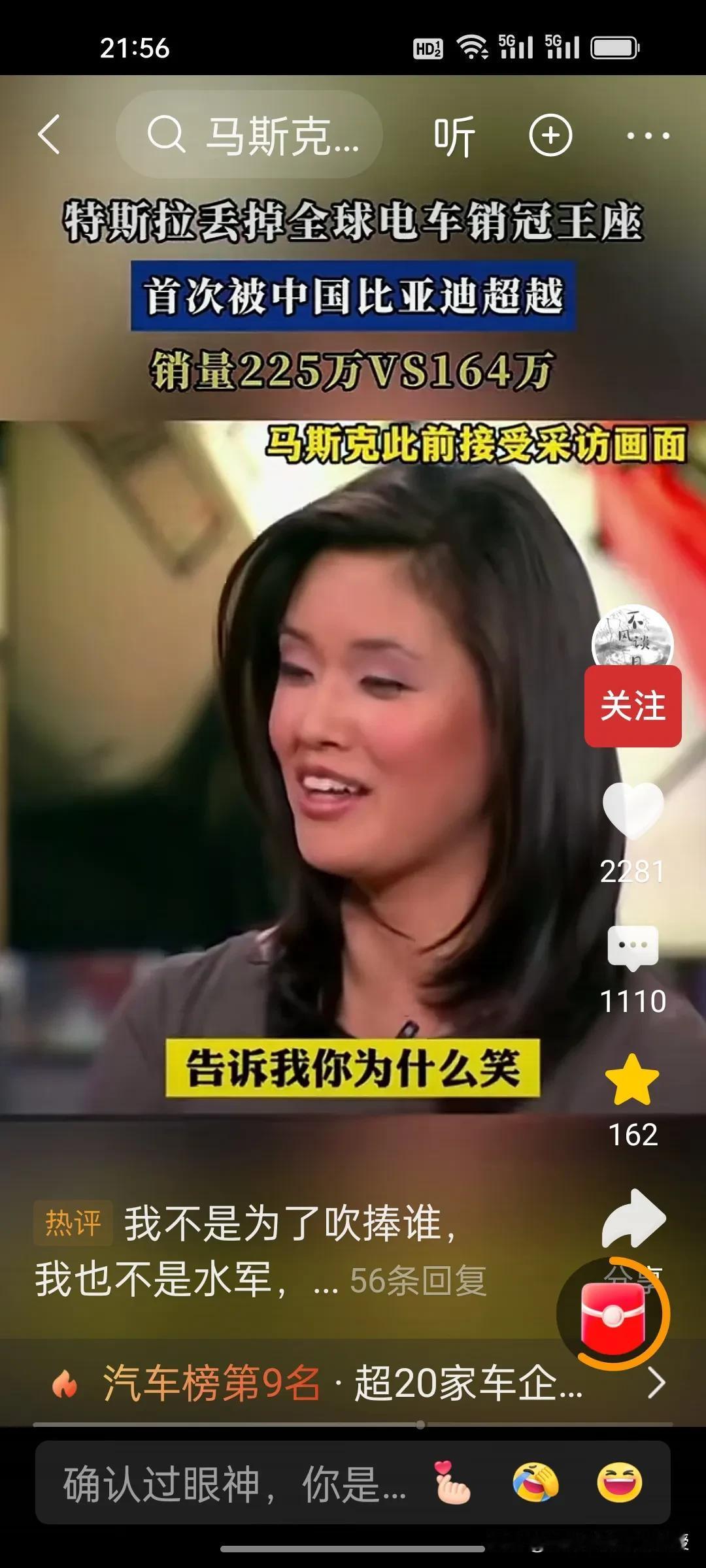 马斯克要是看到之前自己的对比亚迪评价的视频,现在也会后悔吧?之前主持人采访马斯克