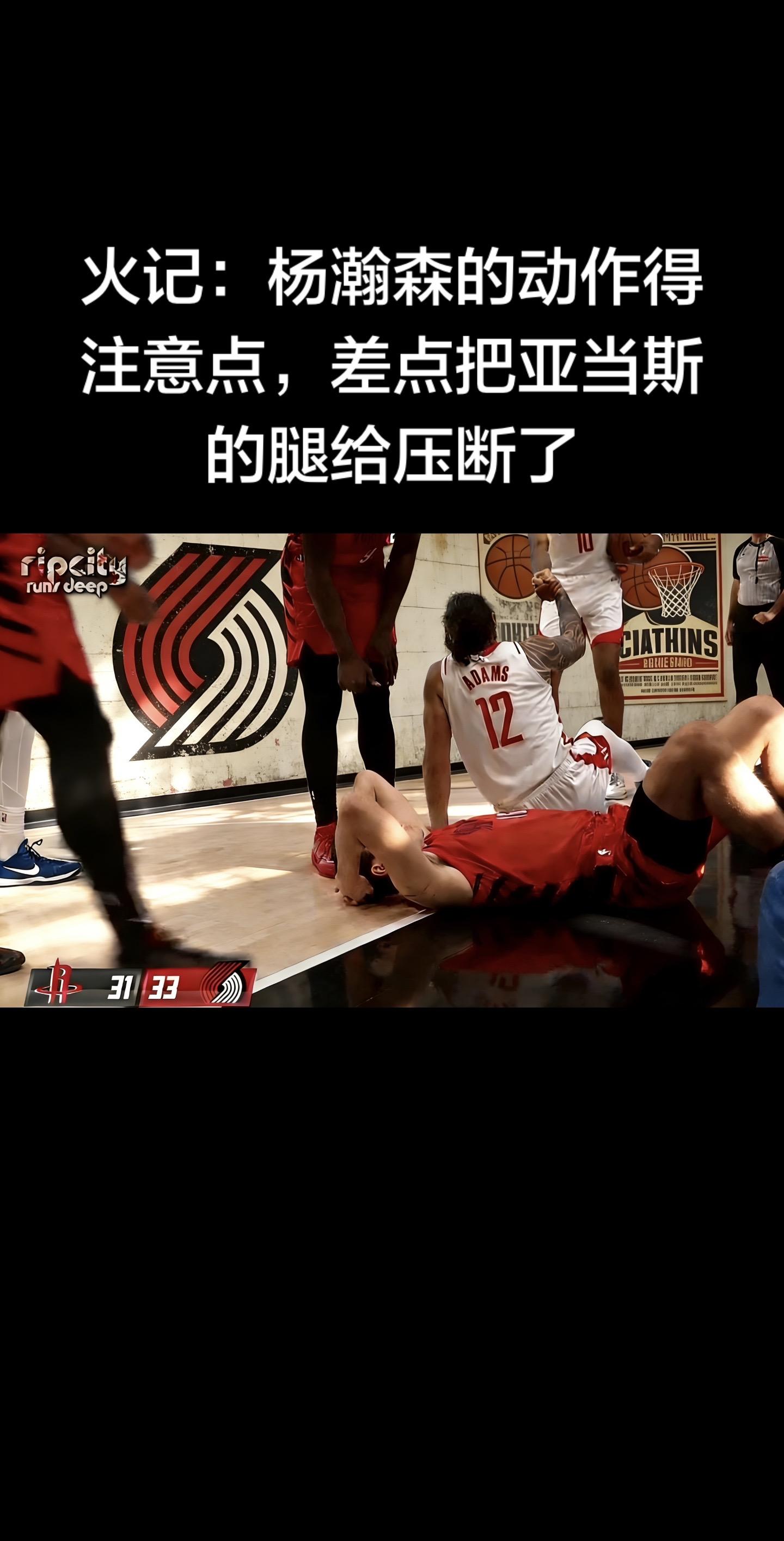 2026年1月10日开拓者对阵火箭的比赛中,火箭随队记者Bradeaux在社交平台发文,称杨瀚森在与亚当斯的拼抢倒地过程中动作有风险,差点压断亚当斯的腿。