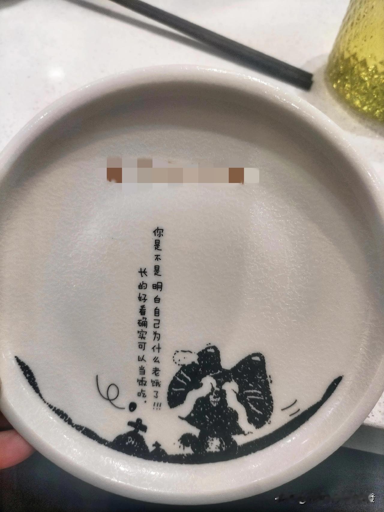昨晚上去一家店里吃烤鱼,由于是现杀现烤,所以点单之后要等好一会儿。无聊之中就看到了桌子上的餐盘,上面写了2句话,有点不理解。 这两句话是竖着写的,右边写着:“你是不是明白自己为什么老饿了!”左边写着:“长的好看确实可以当饭吃。” 单句都能理解,可连一块怎么感觉那么别扭,那么不通顺,那么的驴唇不对马嘴哩。 大家也看看,这到底是想表达个啥意思?