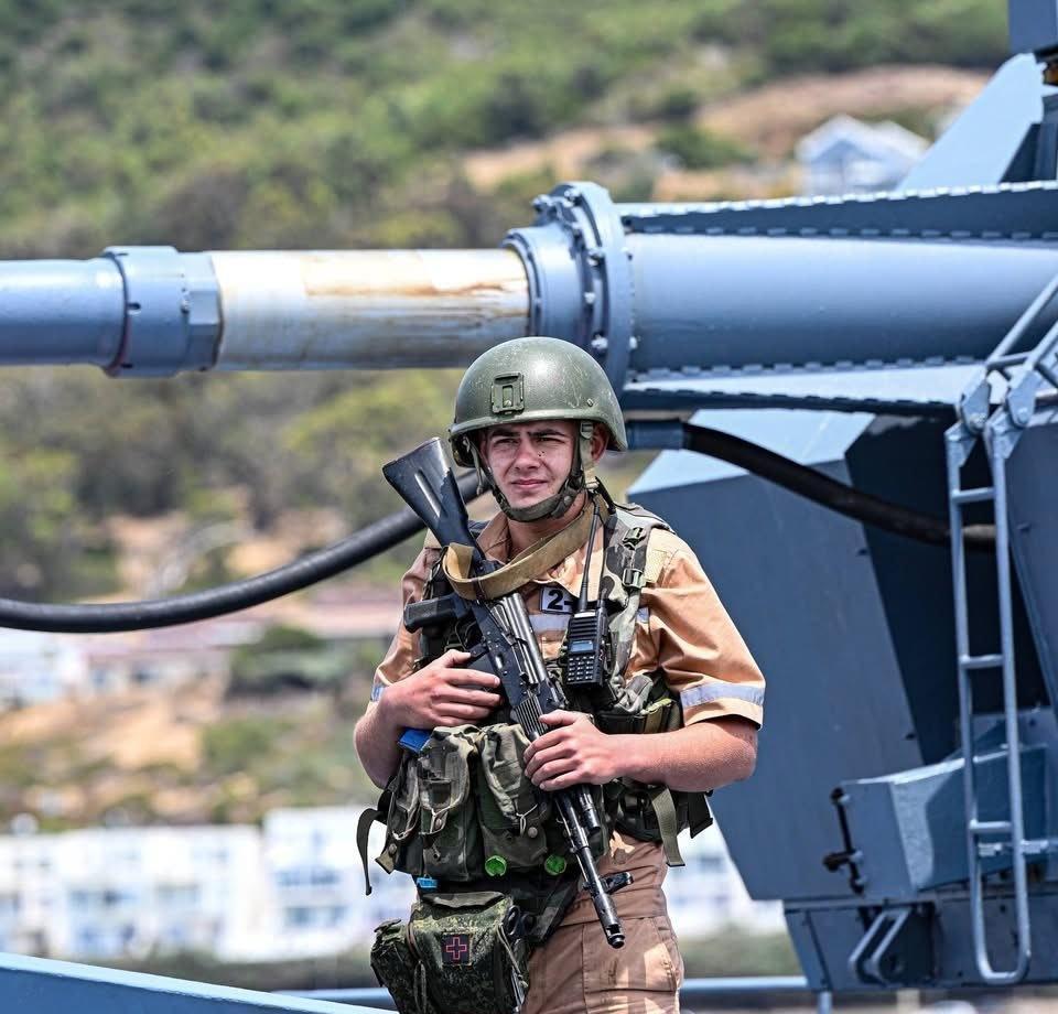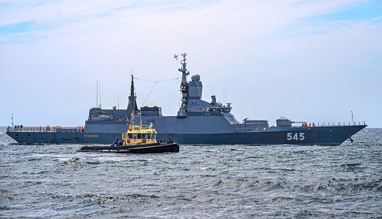 在南非参加演习的俄罗斯海军“坚固”号导弹护卫舰。