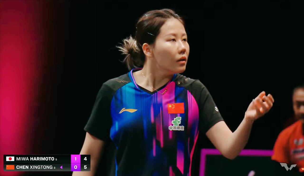 陈幸同不会也要输给张本美和吧? 第一局同同已经9:11输了, 第二局 两人有多次对抗, 陈幸同的正手力量偏弱, 打不死张本美和。 但是张本美好无论反手还是正手, 都占优势, 同同难打了。 不过这场球, 是最近同同状态最好的一次, 而且心态非常平稳, 如果张本美和一会心态变化了, 估计同同可能逆转。