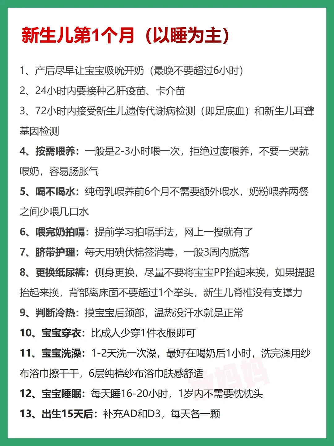 新生儿刚来到这个世界,还不具备生活自理能力,吃、睡、洗护都需要大人照顾,新手爸妈要提前做好攻略,每个细节都要了解清楚