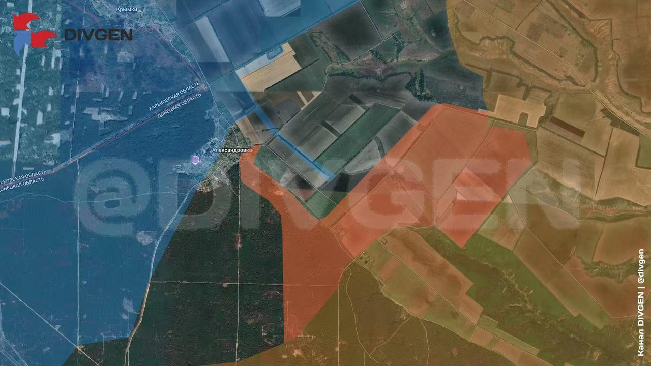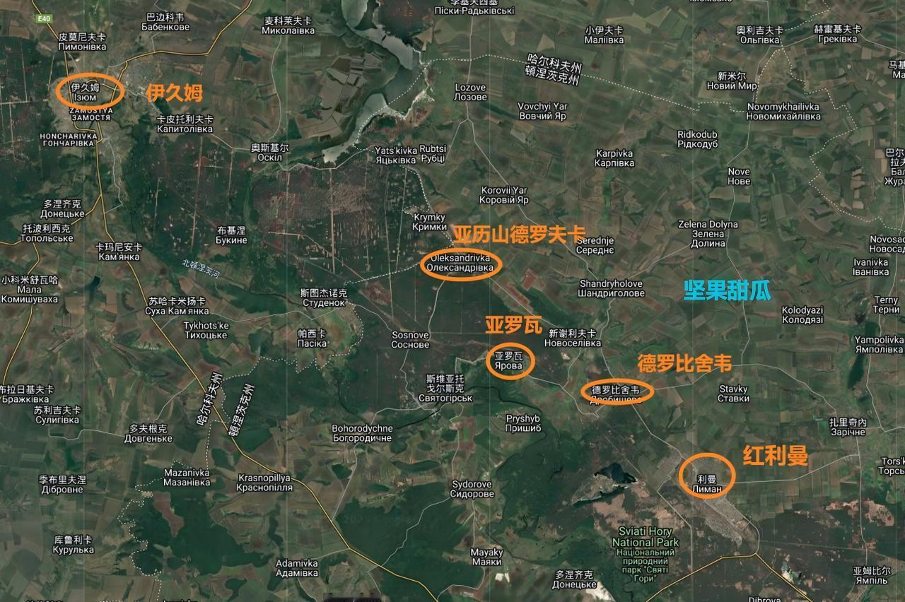 顿涅茨克北部, 西部集群推进到亚历山德罗夫卡, 这里已经远离红利曼,俄方自己称朝着伊久姆打。这里离顿涅茨克和哈尔科夫边境越来越近了。