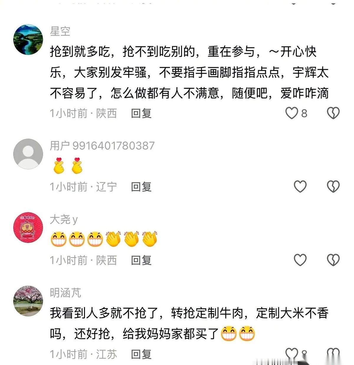 我算是看明白了,这哪是抢吐司啊。 这抢的是一种“我跟你们是一伙的”的感觉,是一种“我参与了”的仪式感。 抢到了,就跟中了彩票一样,能在评论区炫耀一下。 没抢到,那股失落感,就得找个地方发泄。 骂谁呢? 当然是骂那个看起来最应该负责的人。 可我看着屏幕里宇辉那张有点为难、又得撑着笑的脸,就觉得特心疼。 他就是想带个好东西,结果呢?结果成了大家情绪的靶子。 我说句扎心的话,真因为一块吐司就破口大骂的,你真喜欢他吗? 你喜欢的,怕不是那个“抢赢了”的自己吧。 买不到就换个牌子吃呗,多大点事儿。 本来就是图个开心,别最后把自己搞得一肚子气,还伤了那个你想支持的人。 真别把一块吃的,搞得比天还大。 累不累啊。