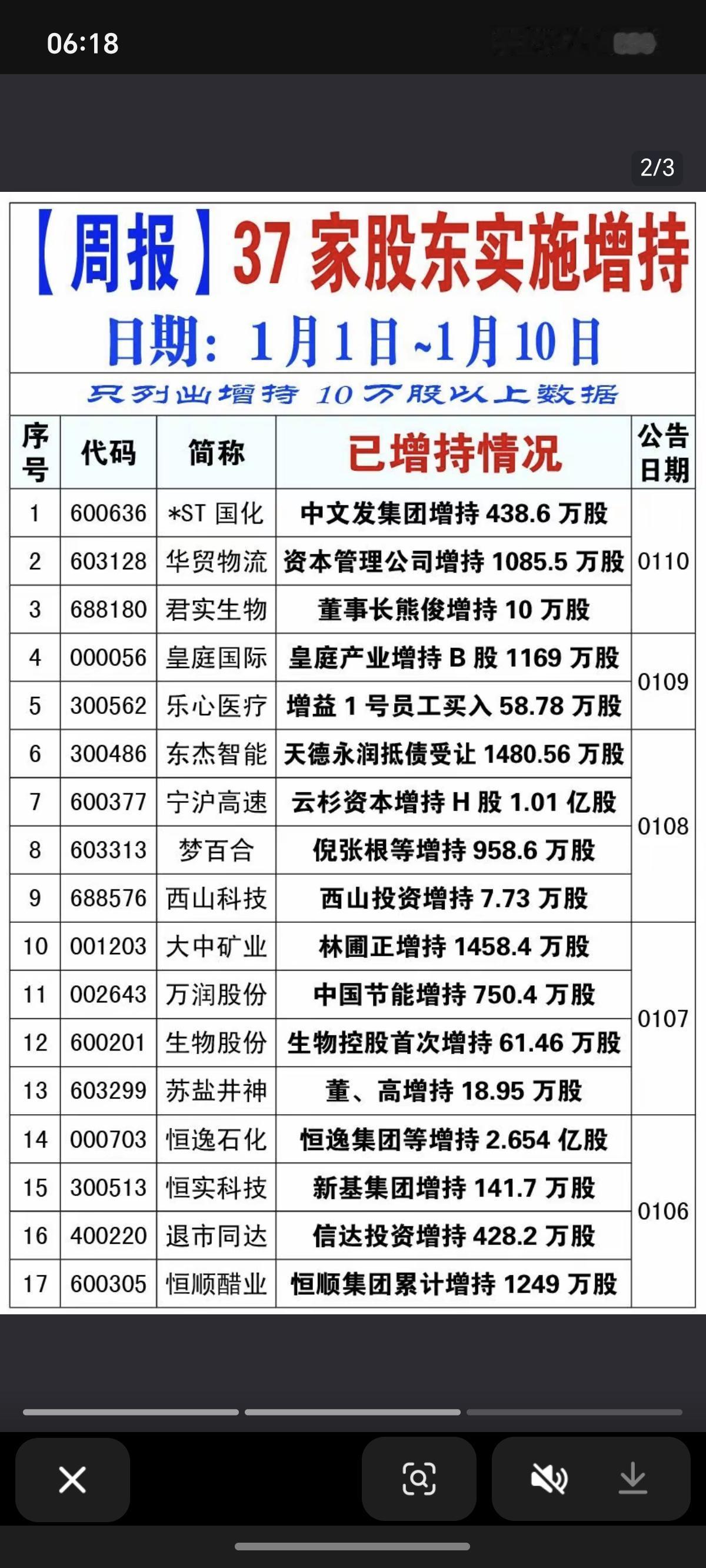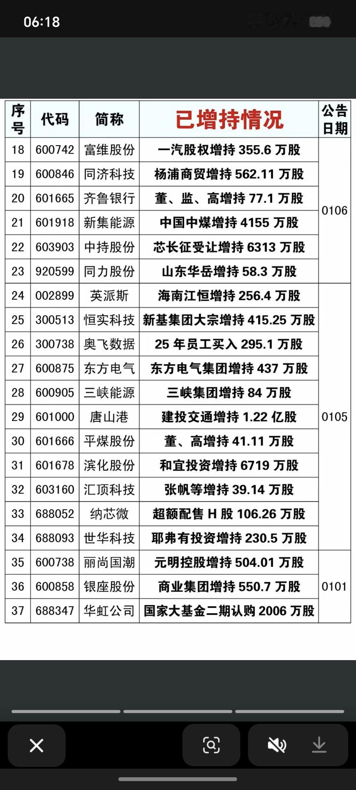 1.11周日 本周增持计划公告! 9家公司披露增持计划,37家公司本周完成增持计划。 4100点敢于增持。说明股东非常看好看好上市公司未来发展。