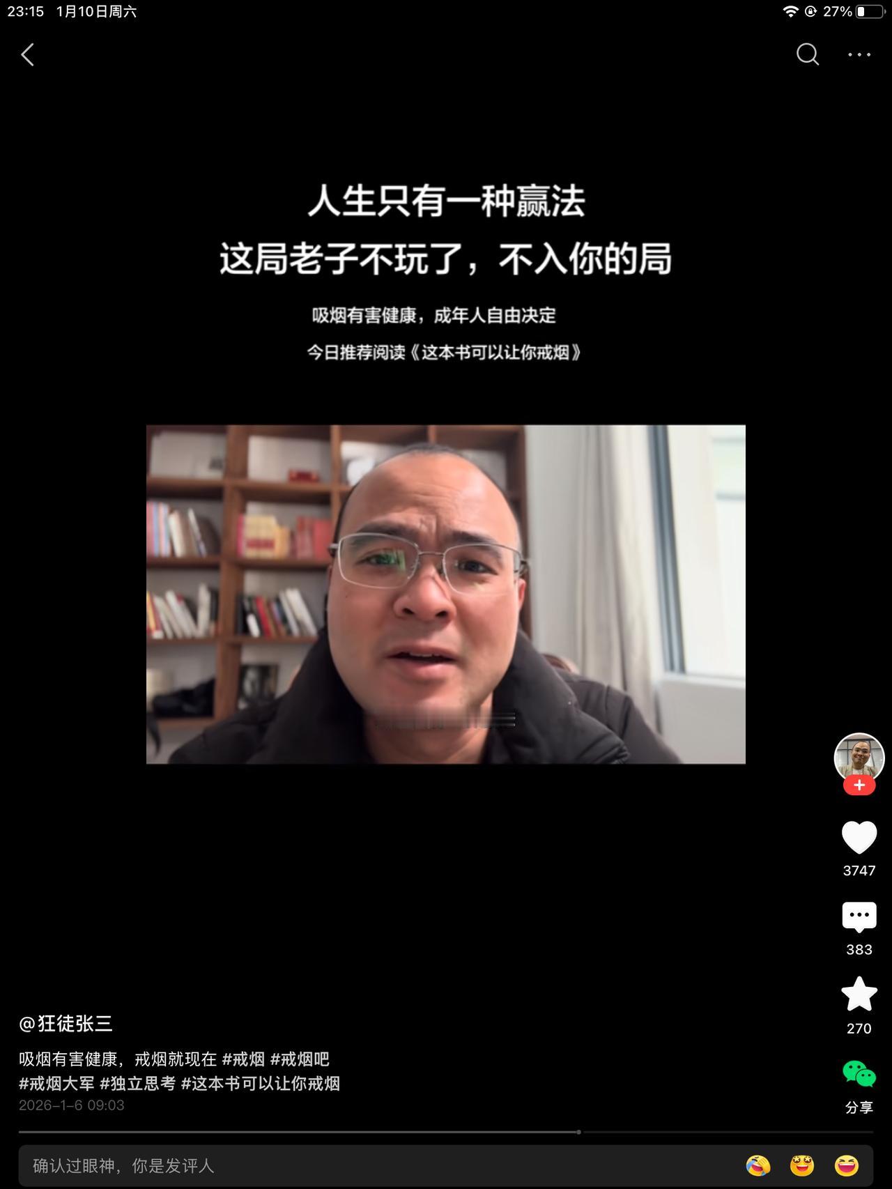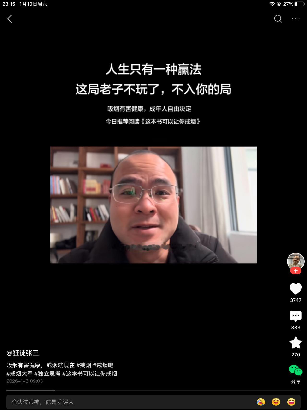 尼古丁是不是真的延年益寿,有没有助燃剂?说真的,罗翔也不知道,也不想知道,他早就累了。所以他说了一句颇有深意的话,那就是,人生只有一种赢法,那就是老子不玩了。老子不入你的局。 想不明白的,多看几遍吧!老罗都秃了。法外狂徒也老了。能给迷茫中的我们录个视频,实属不易。珍惜吧!