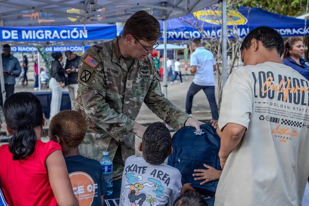 美军收买人心还是有一套手法。 2026年1月8日,美国陆军联合特遣部队-布拉沃,在巴拿马城的菲尔梅萨旅游活动中向当地居民分发背包。美国和巴拿马有着悠久的繁荣与安全的承诺,这些都因深厚的历史、文化和经济联系而更加紧密。