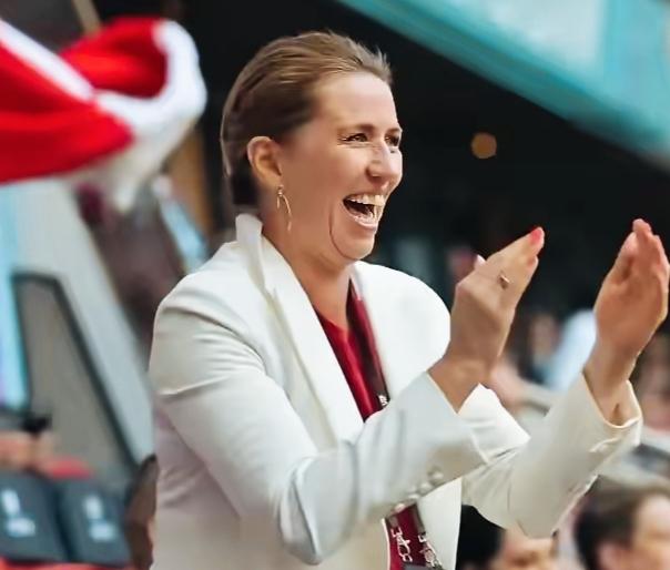 丹麦首相弗雷泽里克森现在还能笑的这么开心吗? 弗雷泽里克森这是在看什么呢? 弗雷泽里克森这笑容是不是张着大口很夸张啊! 这笑容看上去是不是非常开心啊!