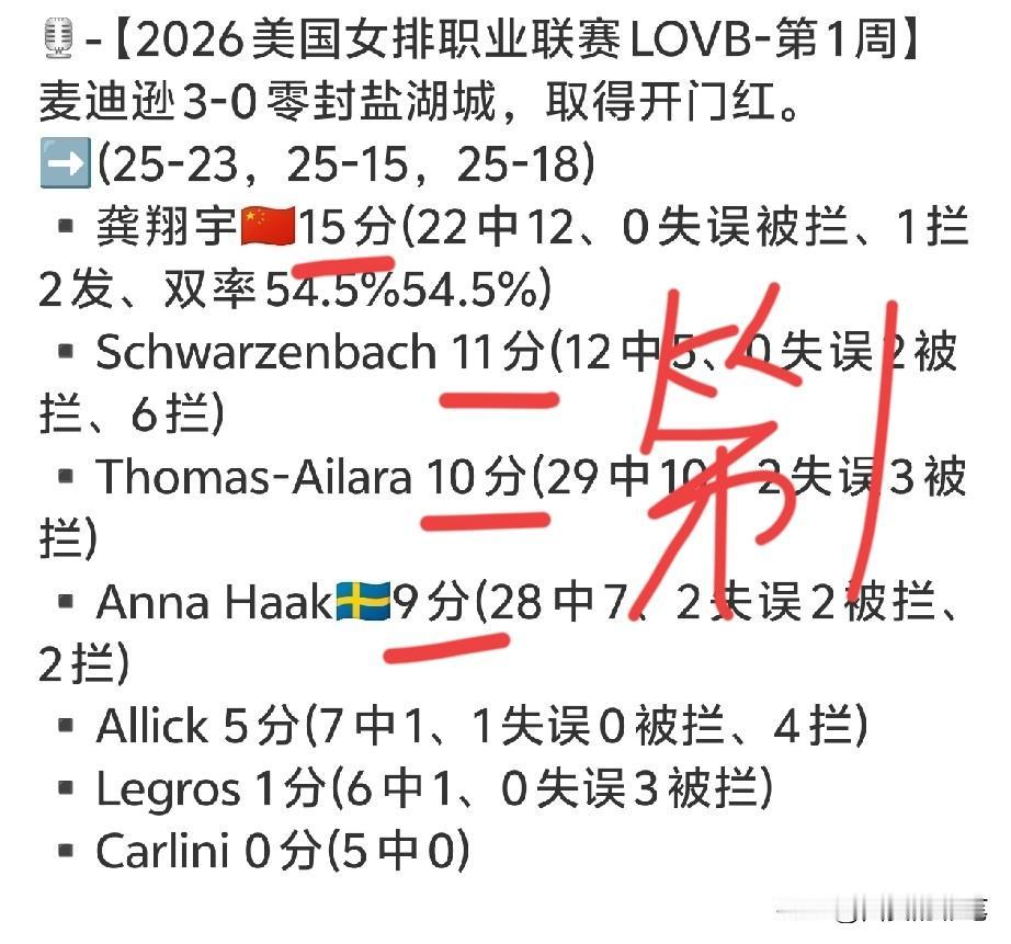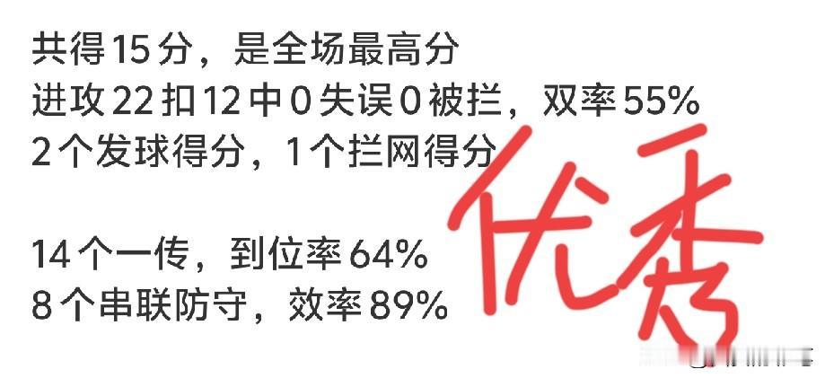 龚翔宇,这是拿MVP的表现[赞] 瞧,首秀的小宇宙,得分第一,双率第一,一传和串联优秀,用几乎完美的表现赢得了现场观众的鼓掌和欢呼。 小宇这场,发得好,攻得牛,守得稳,简直就是MVP的水准[呲牙],一起为她赞赞[赞]