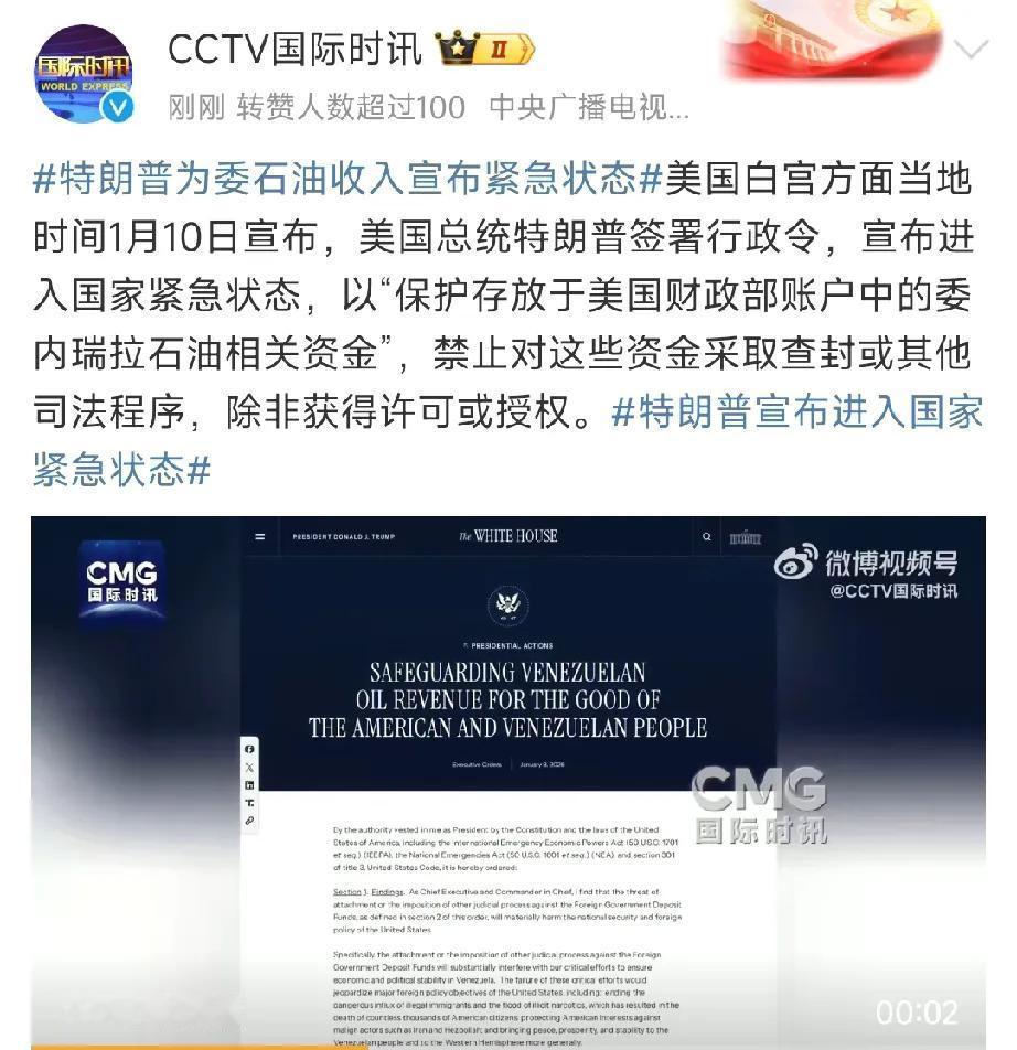 美国剥夺了委内瑞拉“财政权”! 特朗普1月10日宣布: 委内瑞拉石油收入资金进入“国家紧急状态”! 并由美国财政部账户全权管理委内瑞拉石油收入资金,“未经”美国许可,绝不可以对该资金进行查封和执行其它司法程序。 一句话,美国要为委内瑞拉全权当家!
