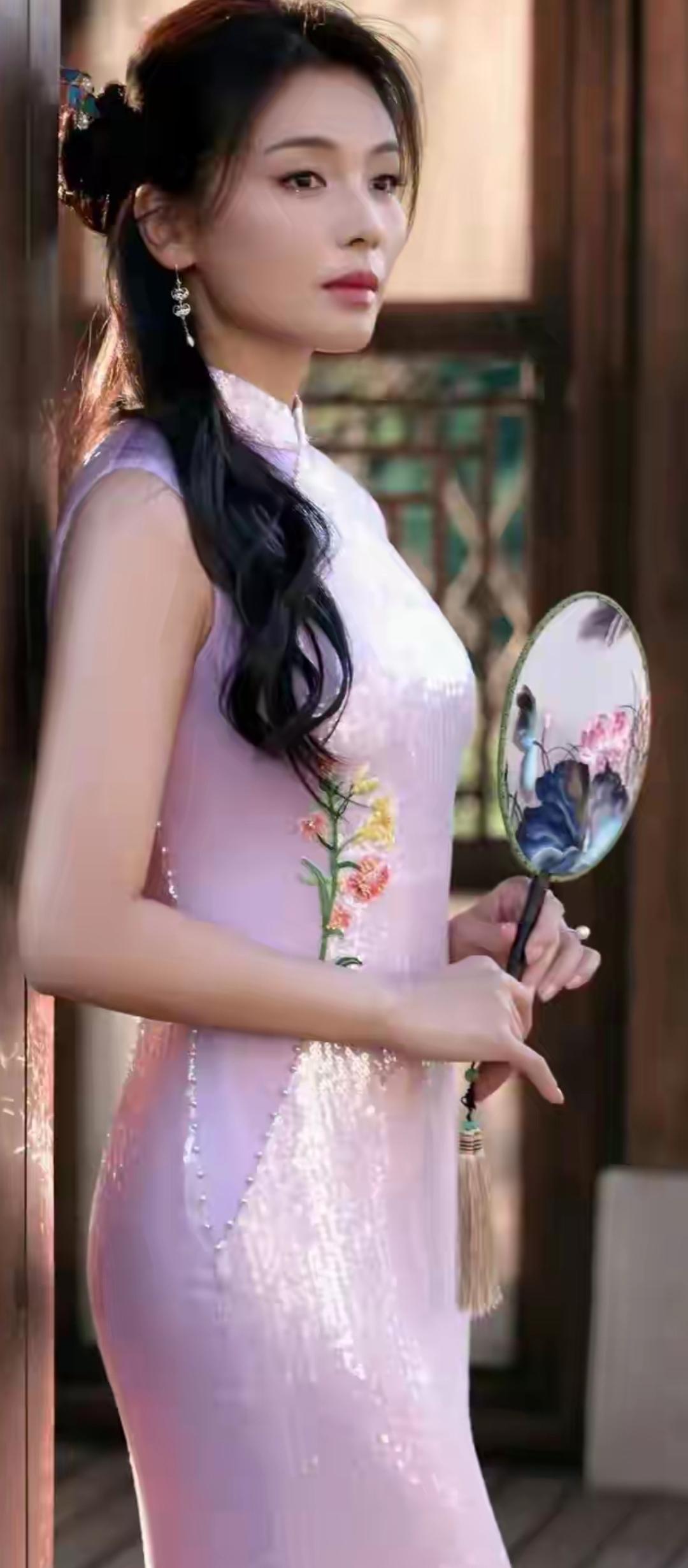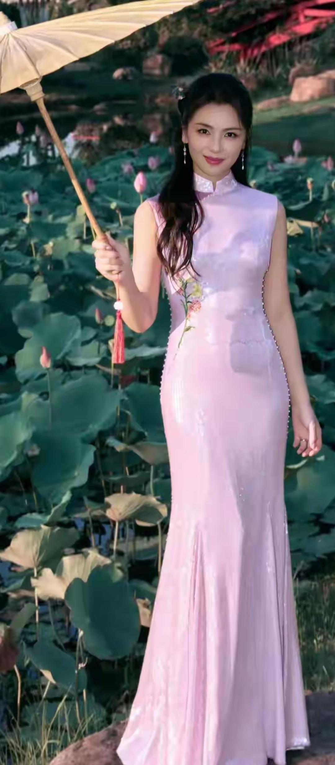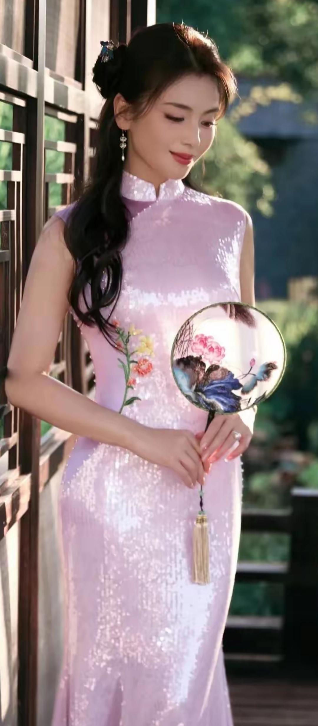 女神不老:粉嫩旗袍,优雅气质,韵味十足!
