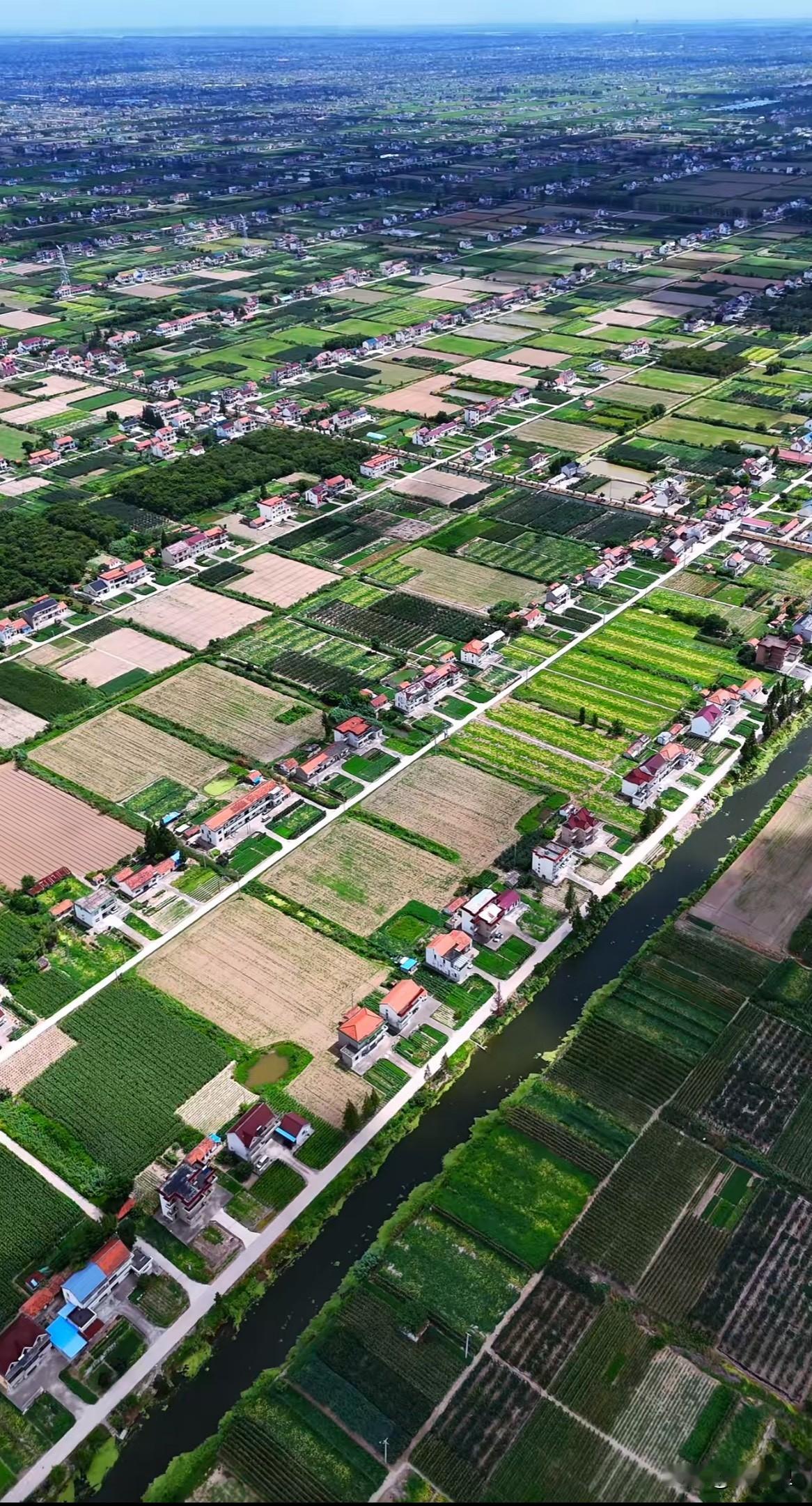 真的太让人震惊了,这一马平川的江苏平原里的乡村,南方的人看了真是惊呆了!全是田-河-路-村的模式,感觉整个一片就是一副大棋盘!上面的房子就是小小的棋子! 这千年的富庶之地,农业确实高效发达,真正的鱼米之乡。房前屋后全是田,但就是太规整了,规整得没有一点变化。自然景观也是,除了田地还是田地,要山没山,要湖没湖,但是在航拍的时候确实无比震撼! 这种房子感觉全是拷贝复制,虽然也都是三层左右的小别墅,但整体偏老旧,应该是实用性为主。对于南方人而言,视觉上缺少南方乡村别墅的多样性甚至美观度!