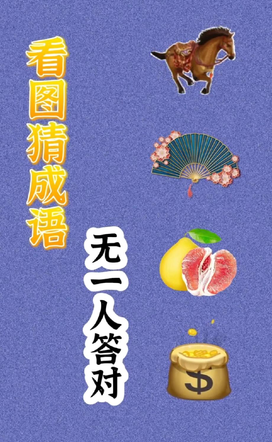 挑战智商!马+扇子+柚子+钱袋,这个成语答案你猜到了吗?评论区见