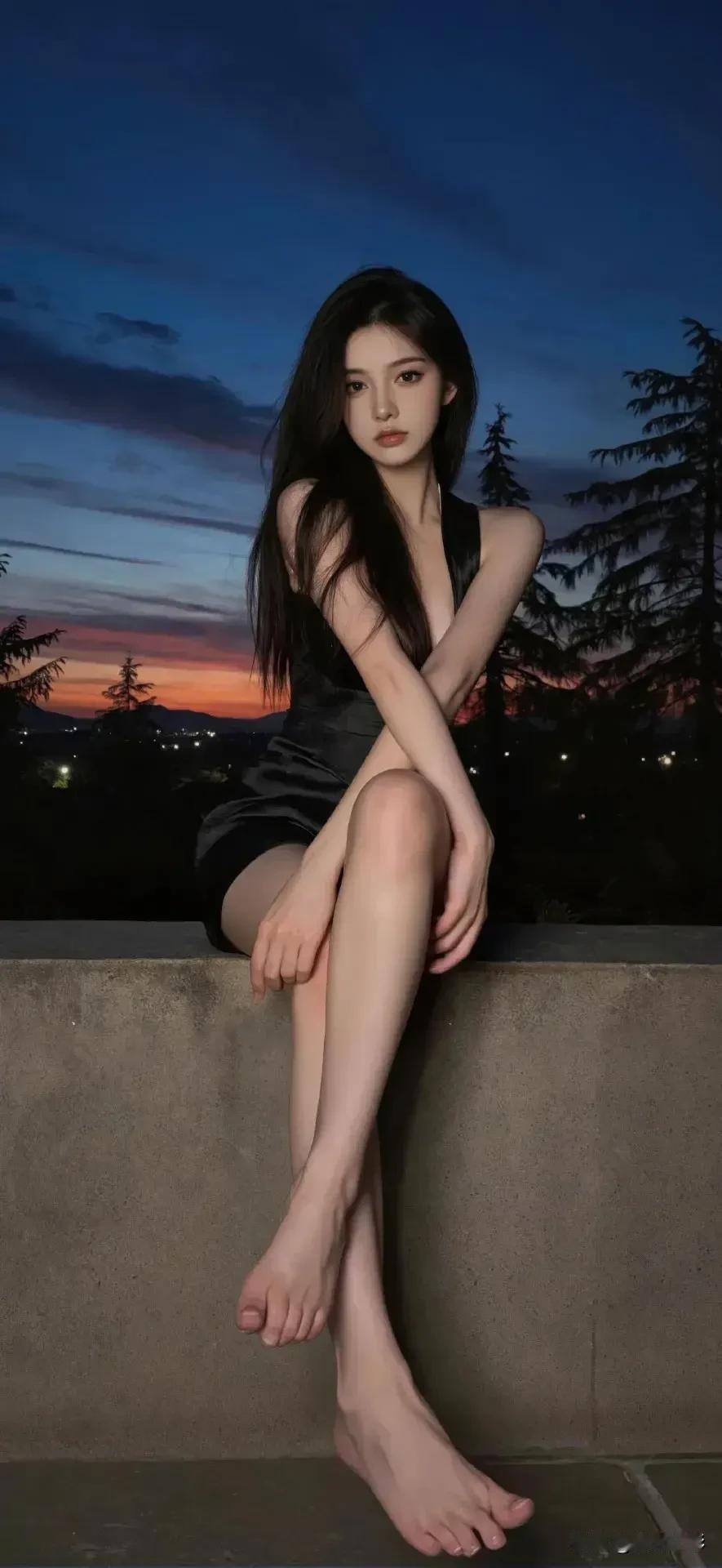 光之影 夏日黄昏,少女坐在石阶上,温柔地凝视远方。