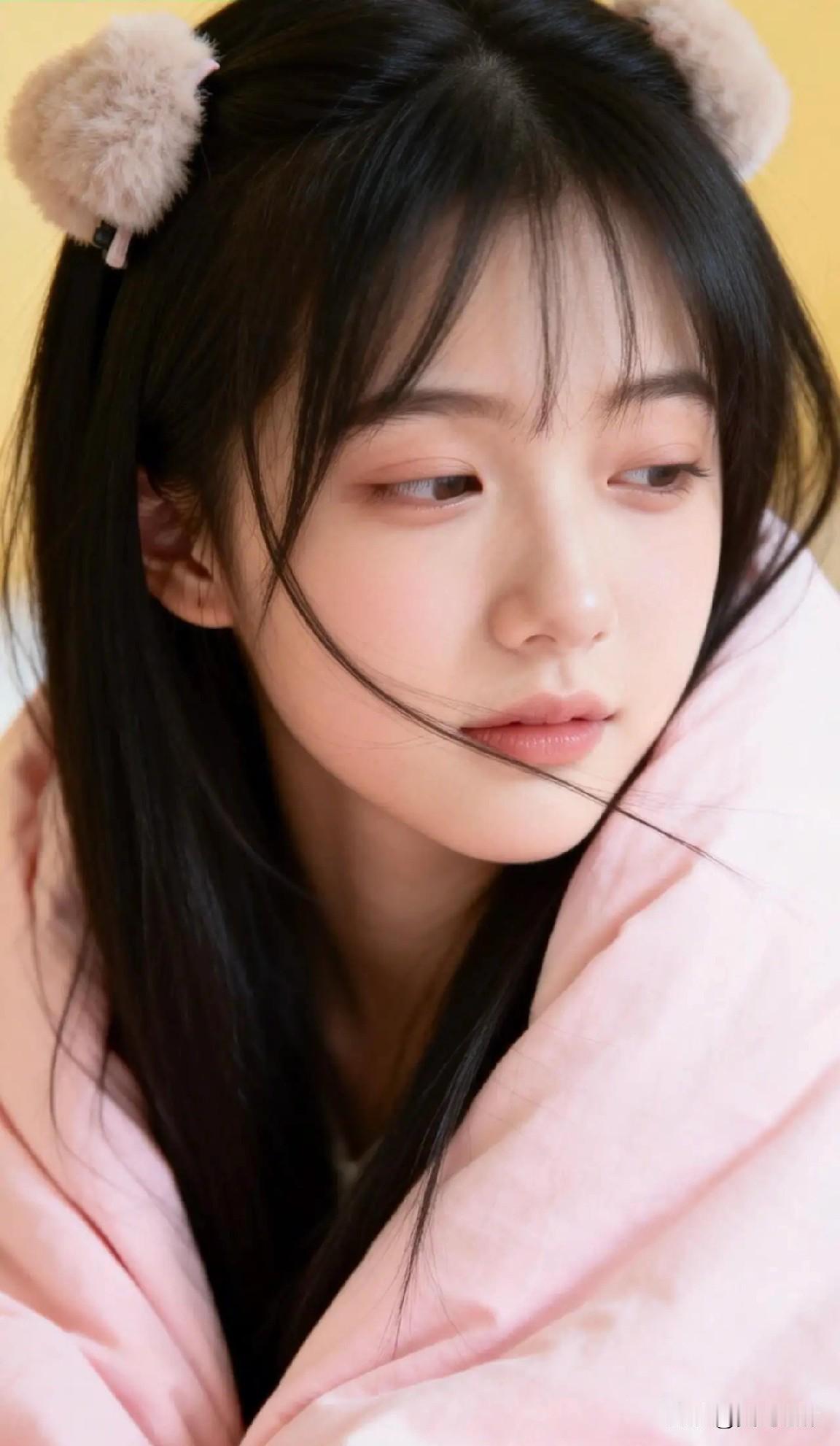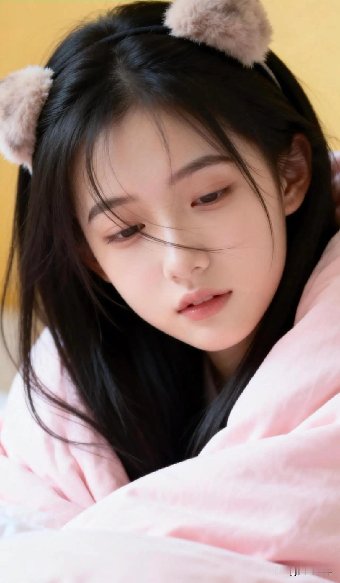 光之影 少女心满满,粉色毛绒发带,温柔氛围照 少女风发带 蓝色发带造型