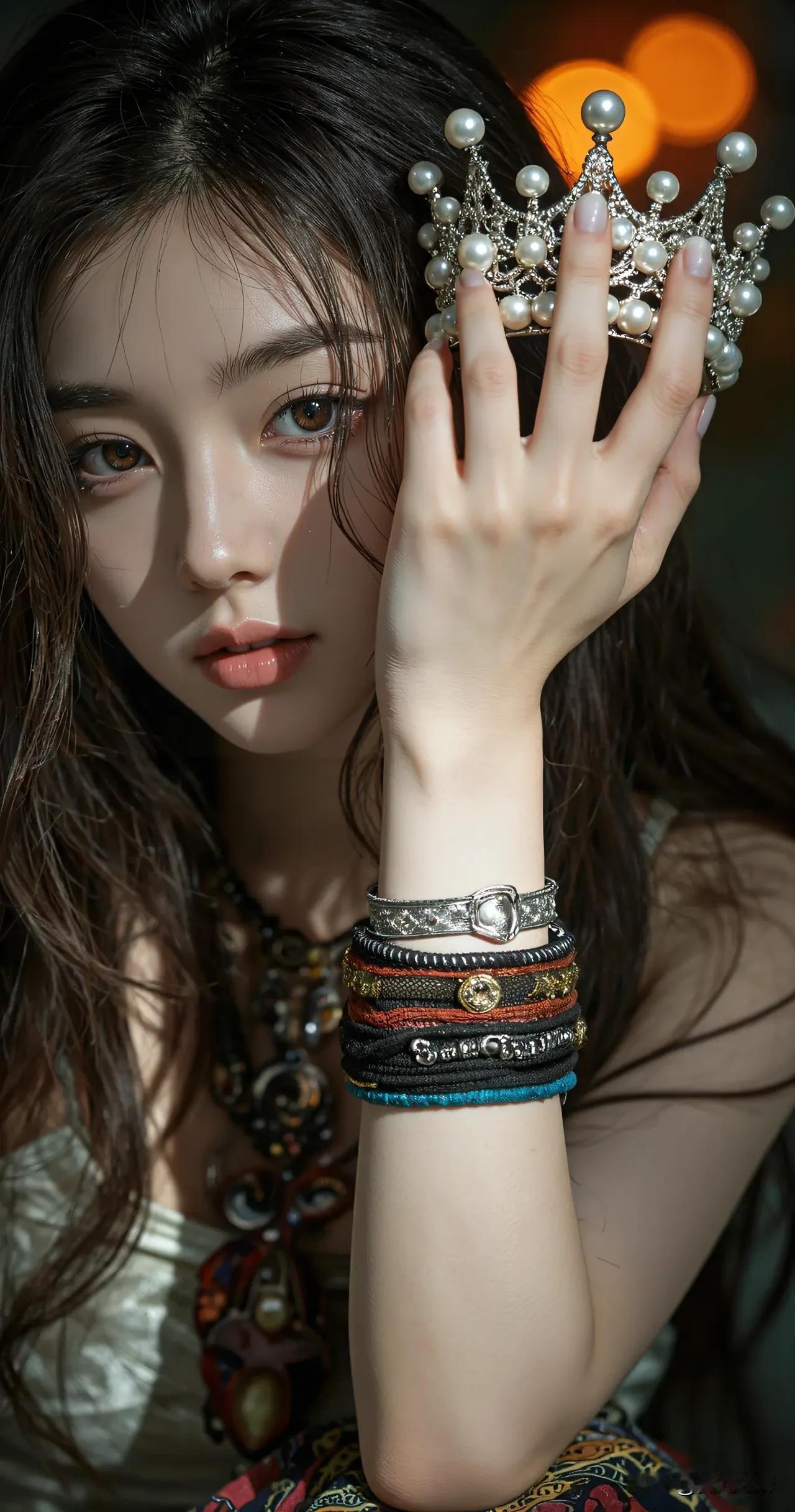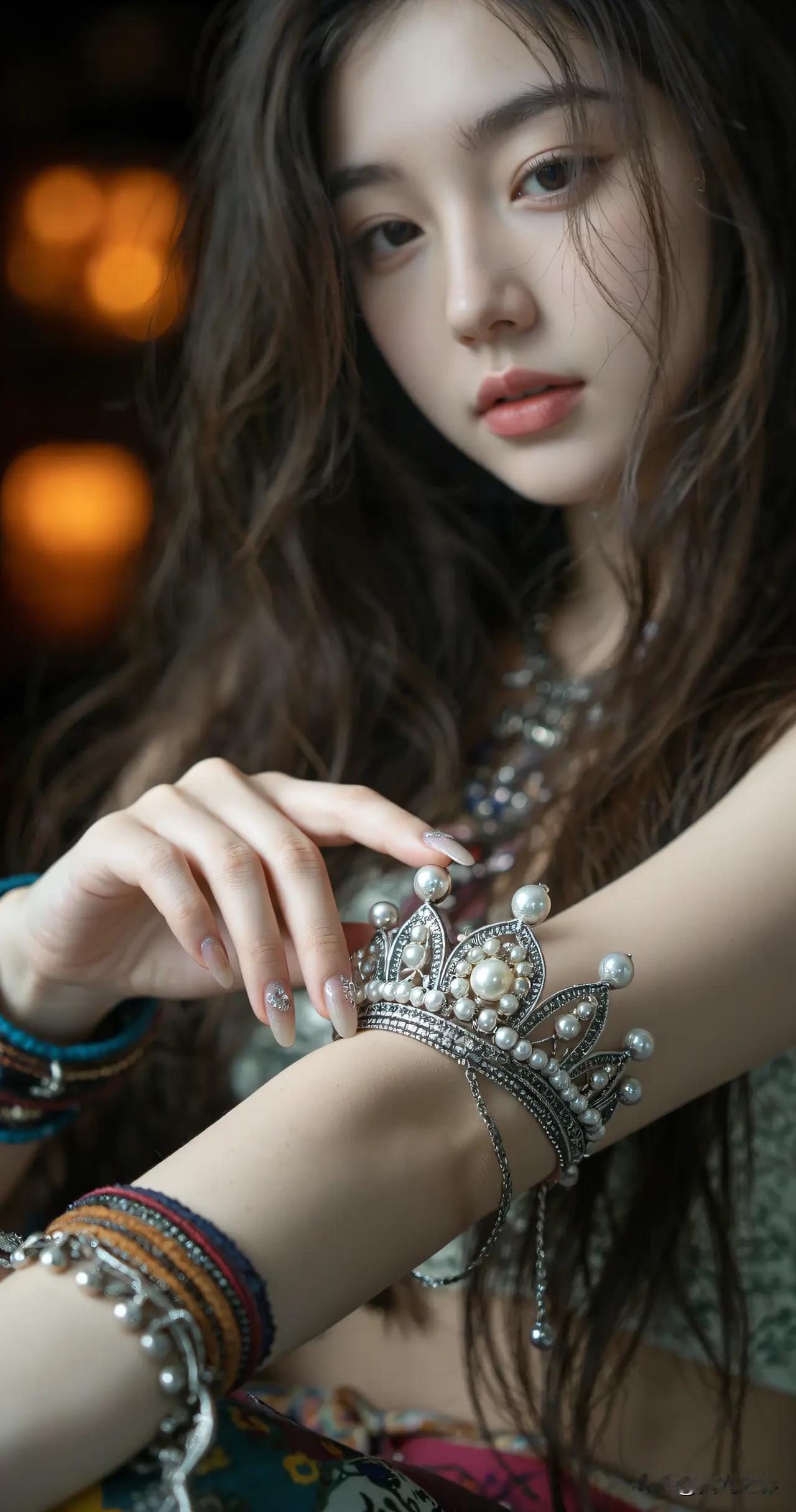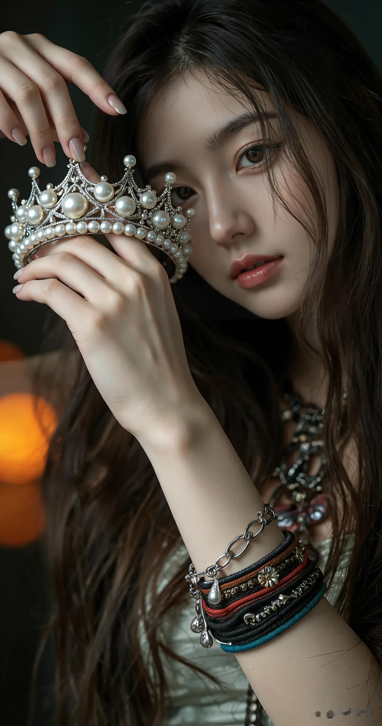 光之影 沉思的少女,精致的妆容与华丽的服饰相得益彰,仿佛置身于古代宫廷。