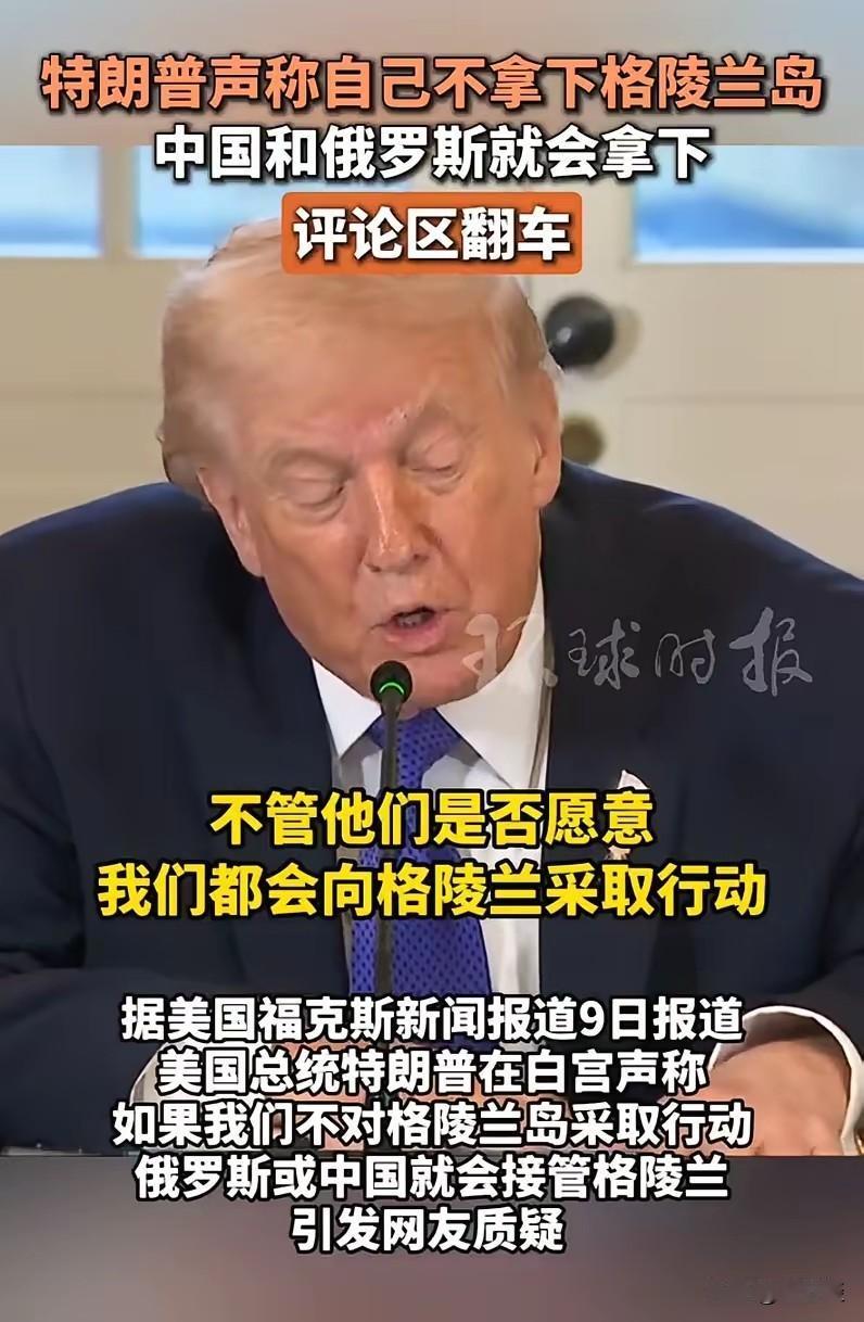 特朗普真的特别会甩锅,堪称世界甩锅第一人,把美国队格陵兰岛的行为说成是俄罗斯和我们的过错所迫,说如果美国不收掉格陵兰岛,那么就会被俄罗斯和我们接收格陵兰岛,这个锅真是甩的太大了,这个锅我们可不背!毕竟格陵兰岛离我们太远了,再说我们从来就没有对外国有野心。